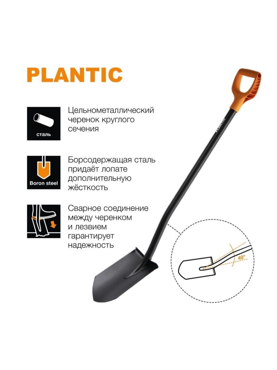Штыковая лопата Plantic Terra 11005-01 отлично подходит для копания каменистой, глинистой и твёрдой почвы. Заточенное лезвие модели под углом 30 градусов позволяет легко перекапывать и перерезать корни. Эргономичная рукоятка в форме буквы D обеспечивает комфортный захват. Ручка подойдет для руки любого размера; для работы в перчатках или без. Максимальная допустимая нагрузка на лопату соответствует немецкому стандарту качества и безопасности GS, подтверждено испытаниями. Использование борсодержащей стали придает лопате дополнительную жесткость и обеспечивает легкое проникновение в почву.