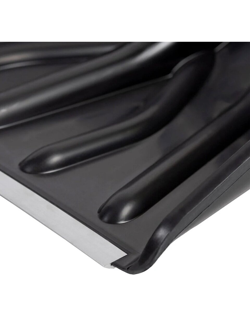 - Усиленная конструкция: пластиковый ковш с алюминиевой планкой выдерживает интенсивные нагрузки и защищён от деформации