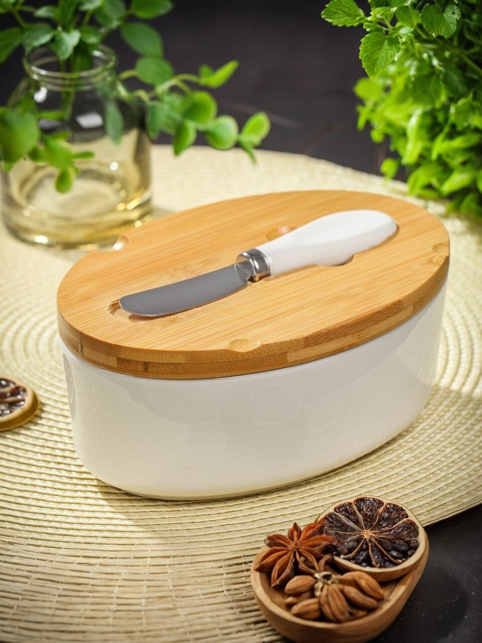 Керамическая масленка подойдет для сервировки и хранения масла и сыра. Благодаря элегантному внешнему виду она будет выигрышно смотреться на праздничном столе и станет отличным подарком для родных и близких.