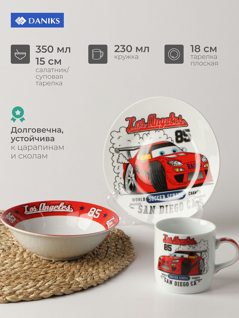Набор керамической посуды Болид непременно порадует вашего ребенка. Собственная посуда с изображением любимых героев непременно понравится малышу. С такой посудой прием пищи покажется гораздо увлекательнее, а еда еще вкуснее.