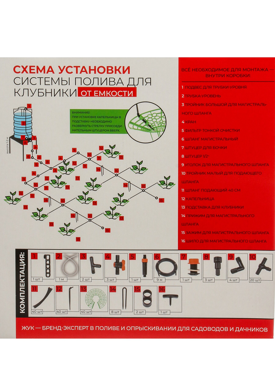 Вы можете приобрести «Набор 168 шт, для капельного полива клубники, от емкости, на 40 растений, Жук, №29, 8845-00» и другие товары в нашем интернет-магазине в Ставрополе по низким ценам и с бесплатным самовывозом.