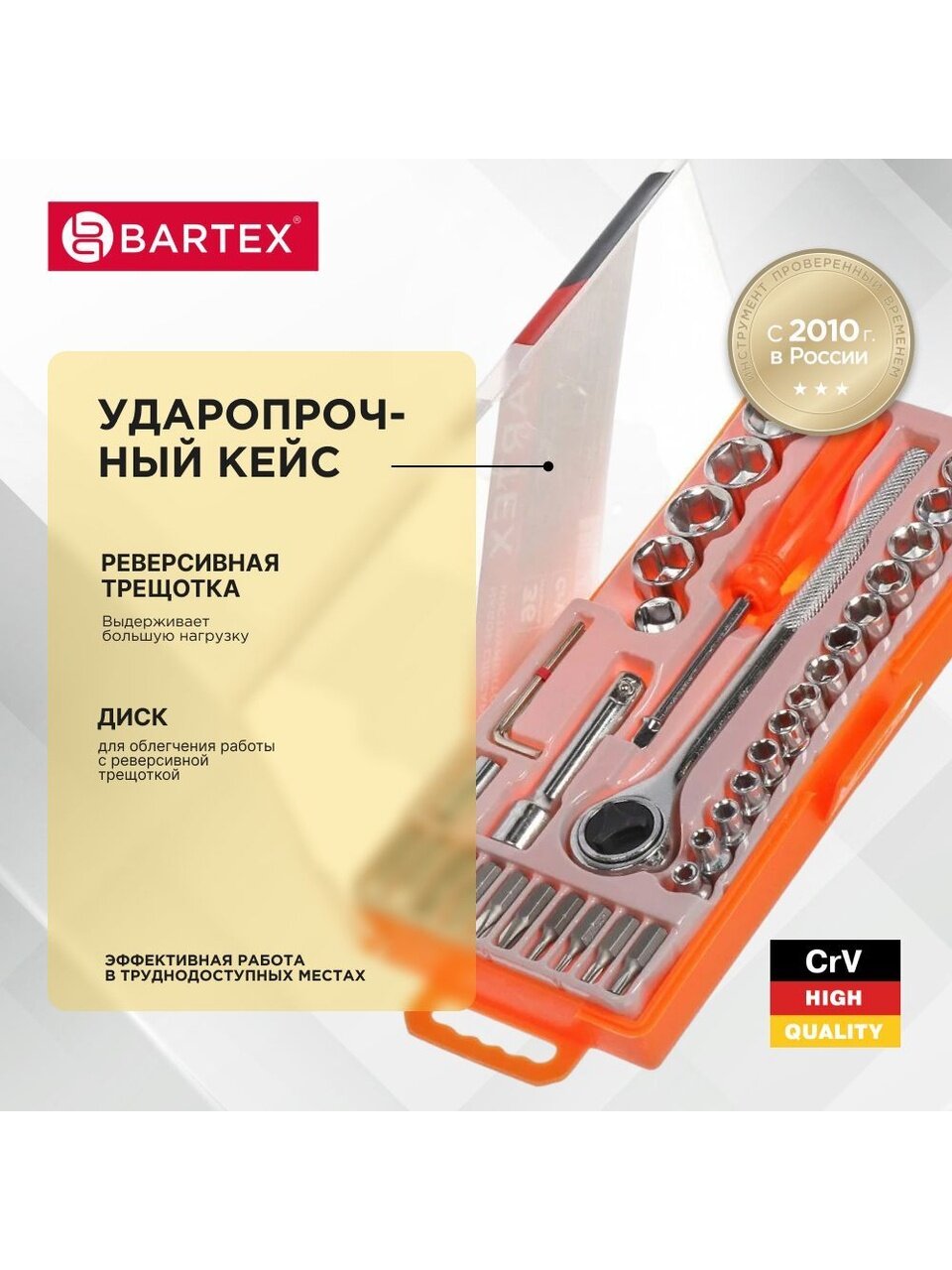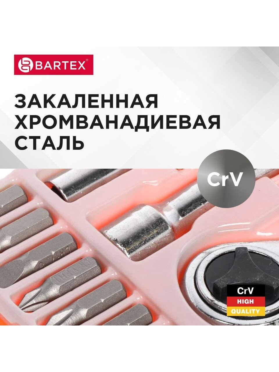 Набор инструментов Bartex выполнен из высококачественной хромованадиевой стали. Сильными сторонами этого материала являются высокая стойкость к ударным нагрузкам и коррозии. Инструменты помещены в стильную сумку, которую удобно брать с собой. Набор отлично подойдет для проведения работ по обслуживанию автотехники, а также для осуществления монтажа и демонтажа резьбовых соединений.
