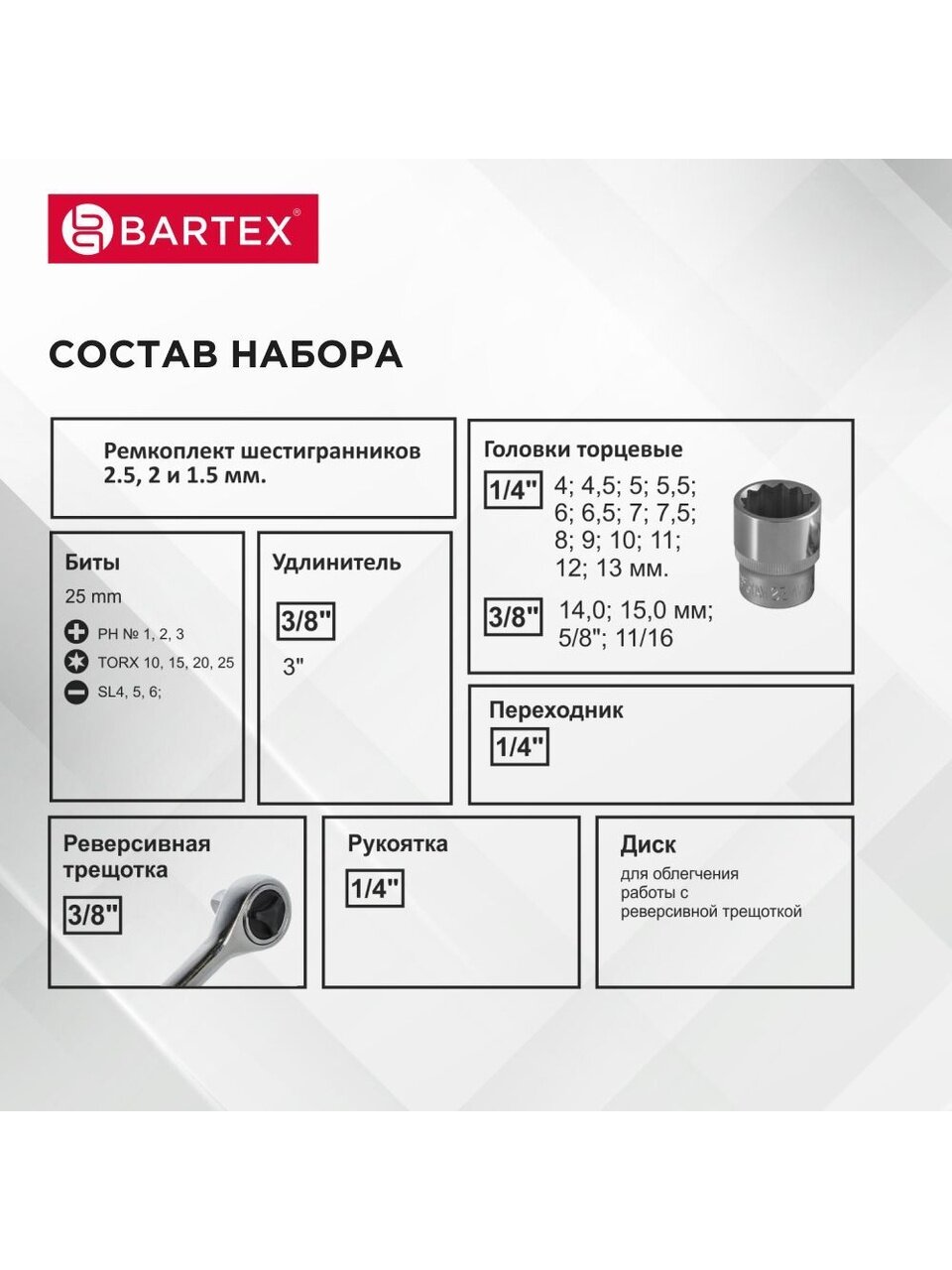 - Диск для облегчения работы с реверсивной трещоткой делает процесс ремонта максимально комфортным.