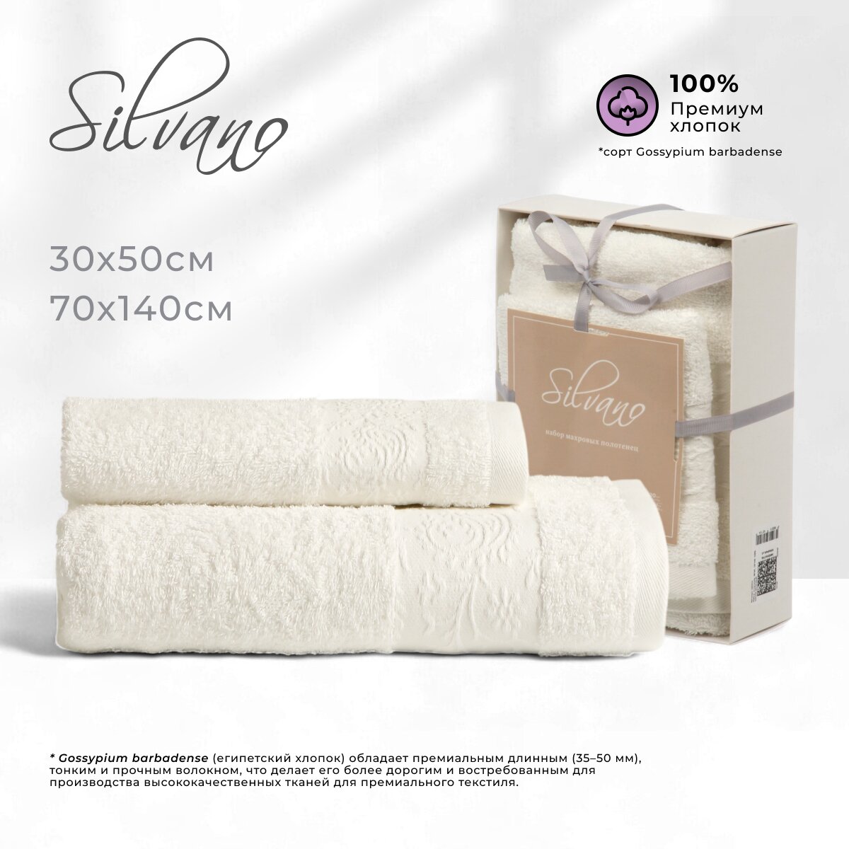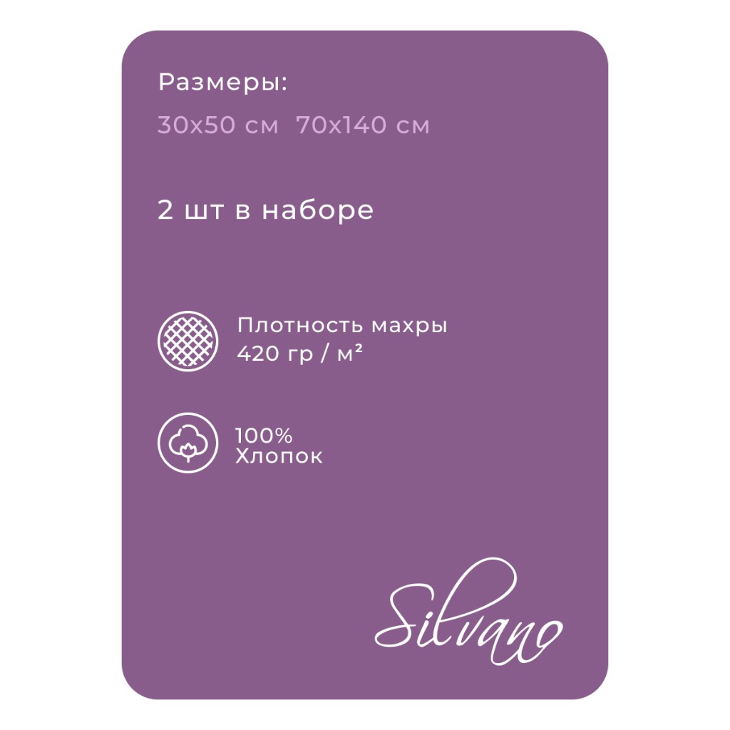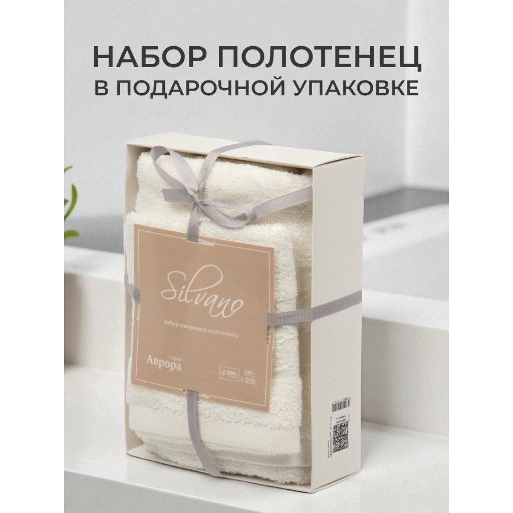 Набор полотенец Silvano Аврора: 2 размера (30х50 и 70х140 см), 100% хлопок, плотность 420 г/м² — комфорт и долговечность для дома и подарка.