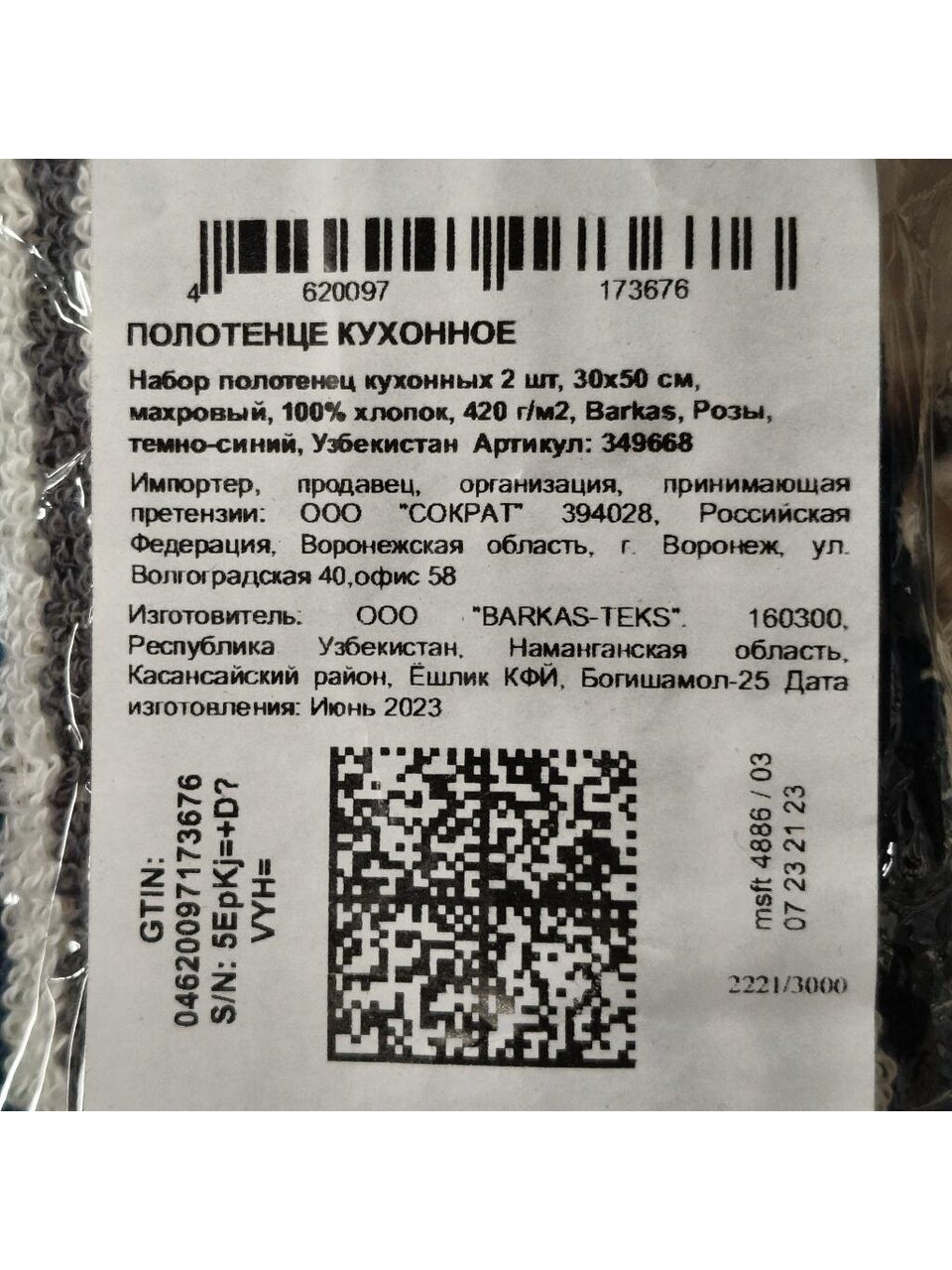 Вы можете приобрести «Набор полотенец кухонных 2 шт, 30х50 см, махровый, 100% хлопок, 420 г/м2, Barkas, Розы, темно-синий, Узбекистан» и другие товары в нашем интернет-магазине в Белгороде по низким ценам и с бесплатным самовывозом.