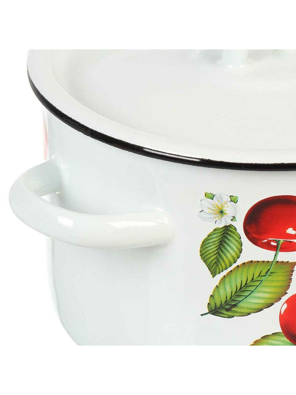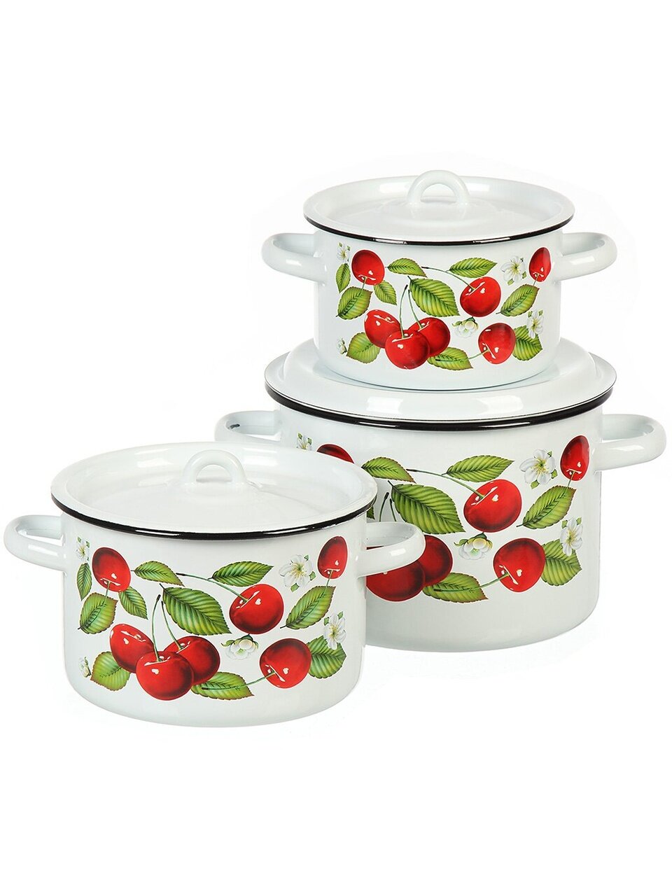 Набор кастрюль из эмалированной стали «Вишня ягоды», 3 предмета: для индукции, газовых плит и дачи. Удобно готовить, легко мыть, выгодно купить!