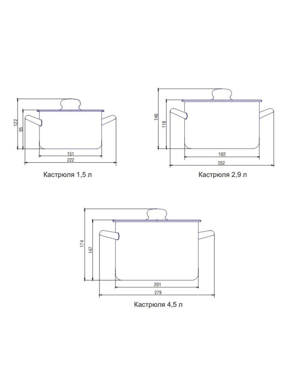 - Оптимальные размеры: 1,5/2,9/4,5 л, прочная эмалированная сталь, срок службы до 24 месяцев гарантии
