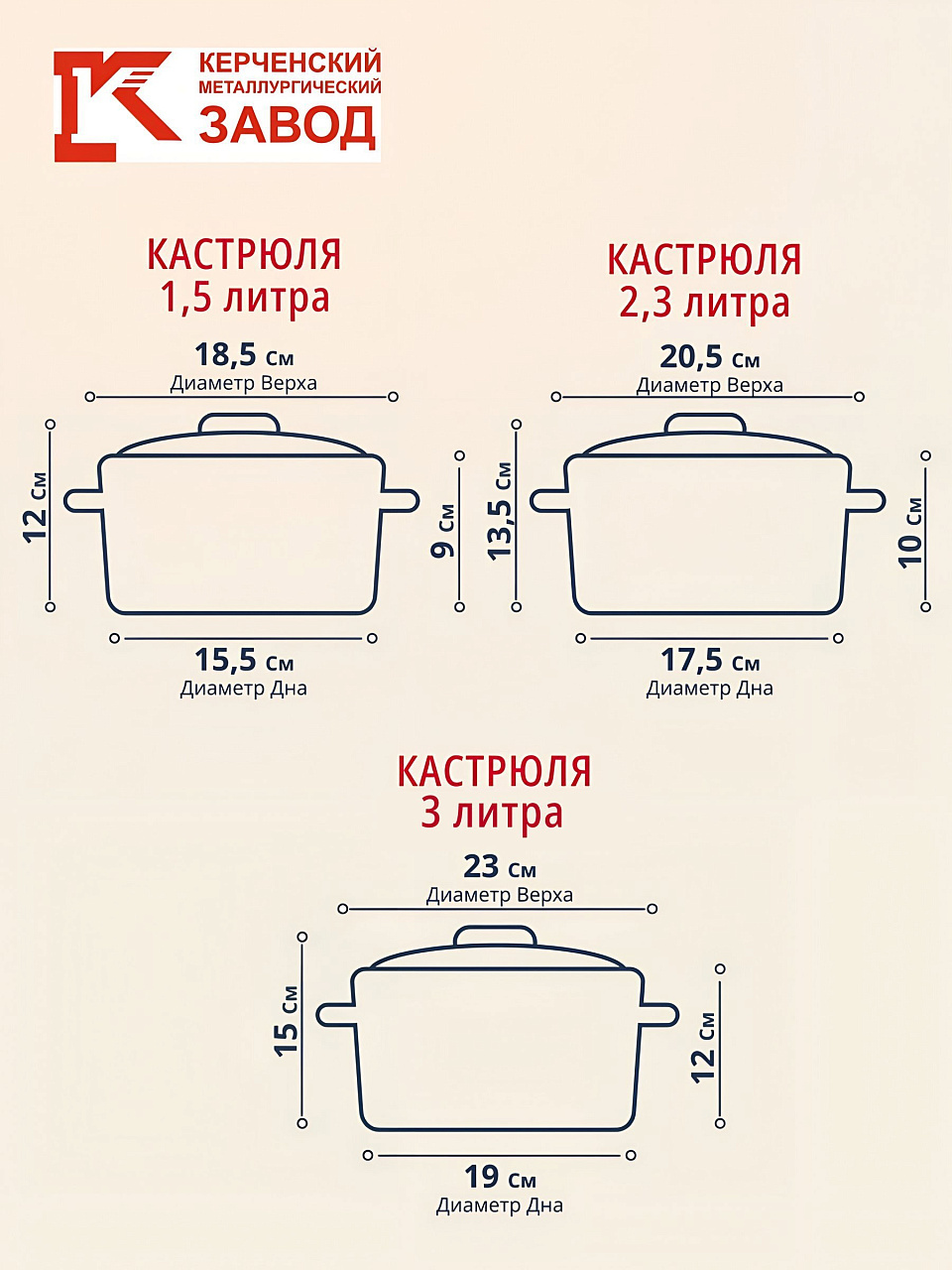Как использовать набор? Просто выберите нужный объём кастрюли — 1.5, 2.3 или 3 литра — и готовьте любимые блюда на газовой, электрической или стеклокерамической плите. Комплект отлично подойдёт для семьи, для дачи или как практичный подарок благодаря универсальности и доступной цене.