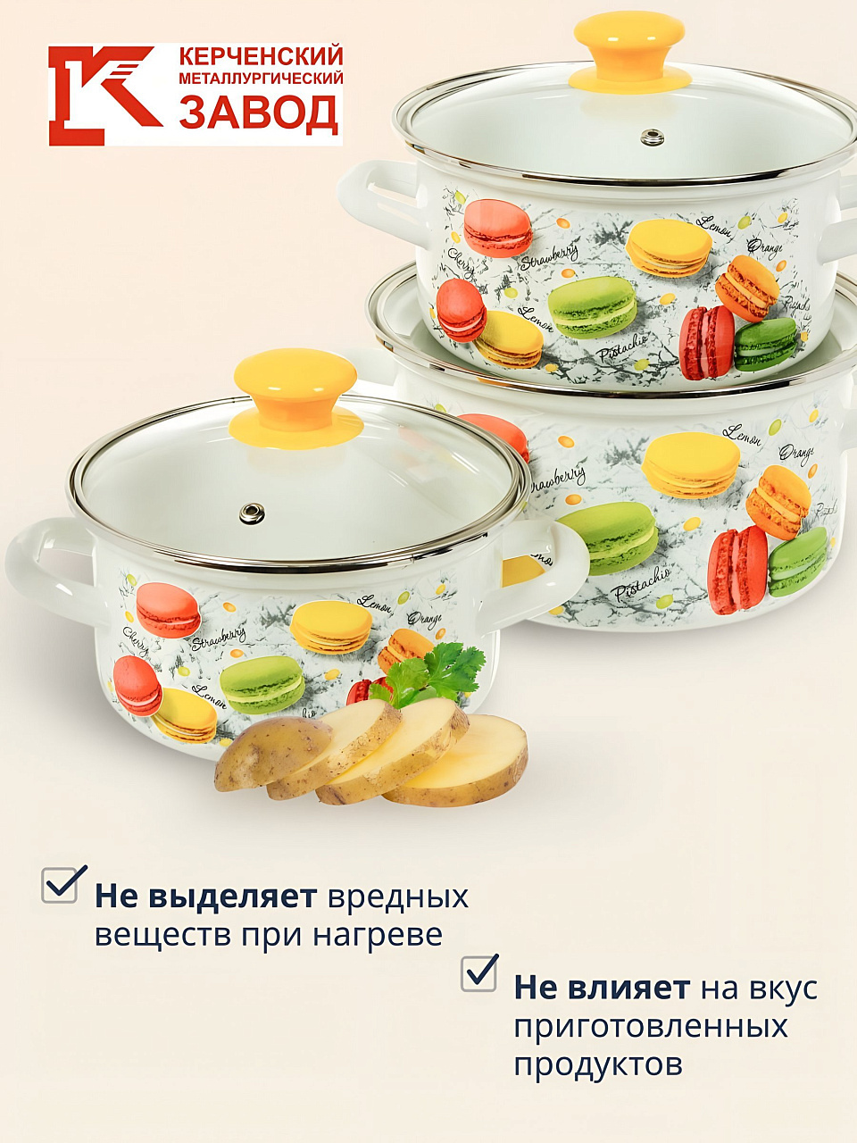 Вы можете приобрести «Набор посуды эмалированная сталь, 6 предметов, кастрюли 1.5,2.3,3 л, Керченский металлургический завод, Цветное печенье-1-Экстра» и другие товары в нашем интернет-магазине в Смоленске по низким ценам и с бесплатным самовывозом.