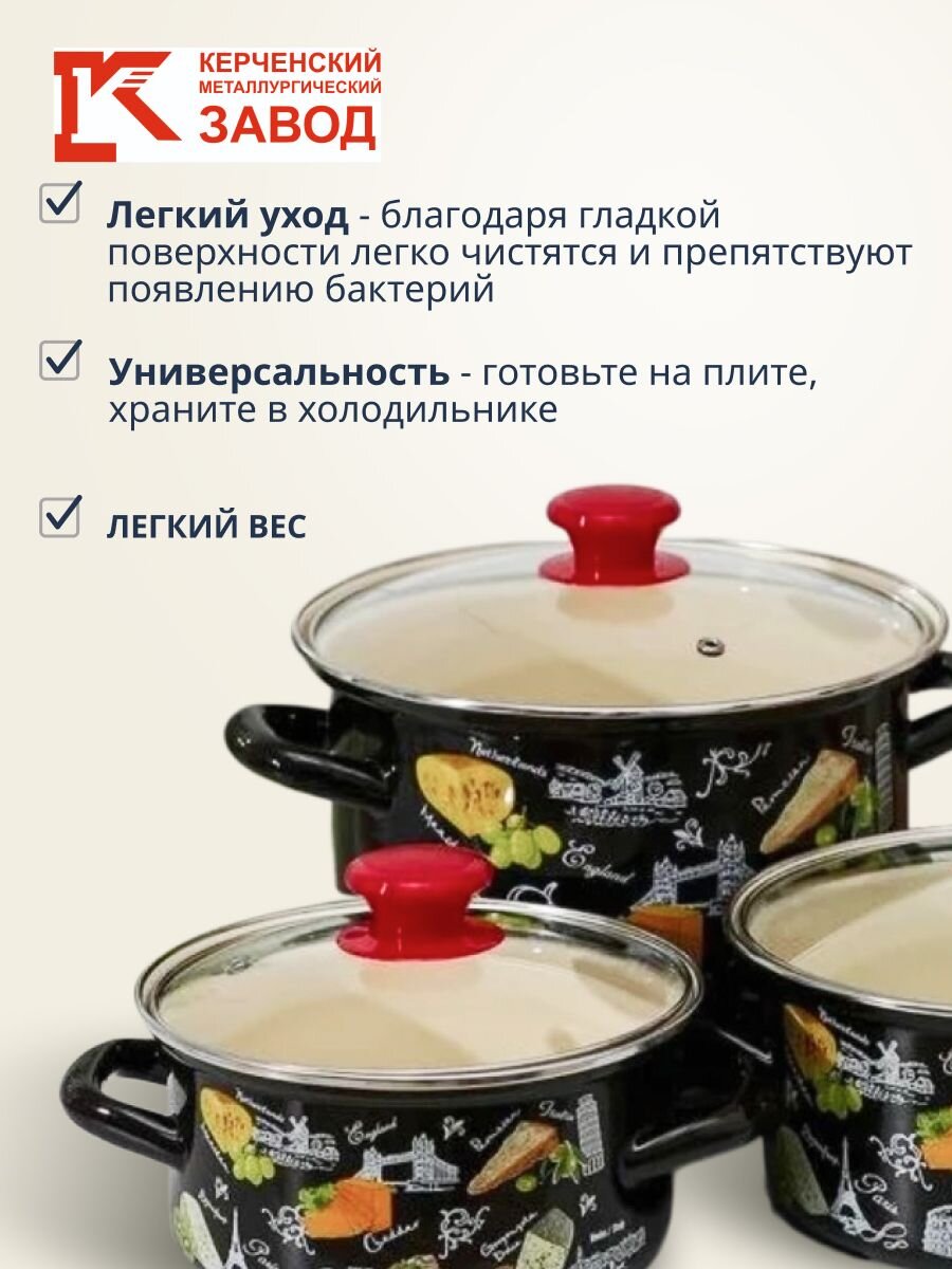 Вы можете приобрести «Набор посуды эмалированная сталь, 6 предметов, кастрюли 1.5,2.3,5 л, Керченский металлургический завод, Сыр-5-1-Экстра, коричневый» и другие товары в нашем интернет-магазине в Серпухове по низким ценам и с бесплатным самовывозом.