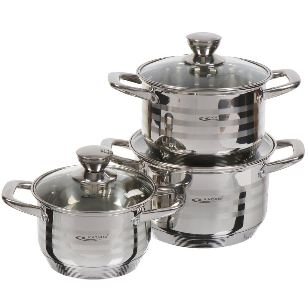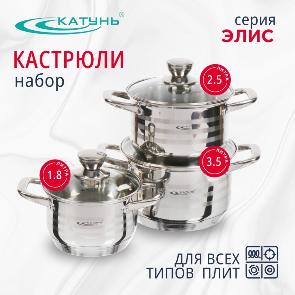 Вы можете приобрести «Набор посуды нержавеющая сталь, 6 предметов, кастрюли 1,8, 2.5, 3.5 л, индукция, Катунь, Элис, КТ16-В» и другие товары в нашем интернет-магазине в Астрахани по низким ценам и с бесплатным самовывозом.