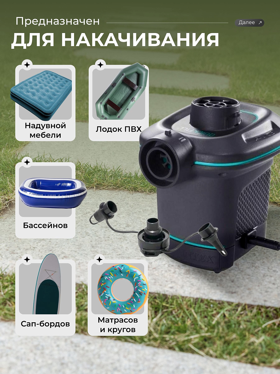 Вы можете приобрести «Насос воздушный электрический, 220 В, 3 насадки, Intex, 66640» и другие товары в нашем интернет-магазине в Смоленске по низким ценам и с бесплатным самовывозом.
