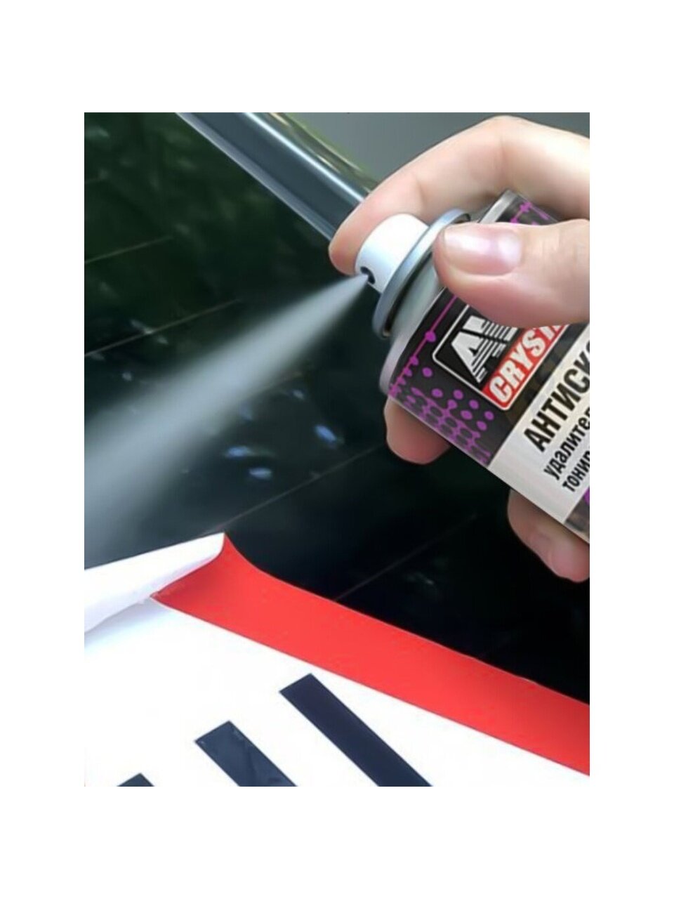 При необходимости повторить обработку. Для удаления тонировочной пленки: Во избежание попадания следов аэрозоля необходимо защитить поверхности, не подлежащие обработке. Не допускать длительный контакт с пластиковыми деталями автомобиля. Равномерно прогреть стекло, подлежащее растонированию. Аккуратно поддеть край пленки и медленно, без рывков, снять пленку со всей площади стекла. Дать стеклу остыть и равномерно распылить состав на стекло, дать подействовать в течение 30-40 секунд. Удалить средство с помощью резинового скребка или сухой салфетки.