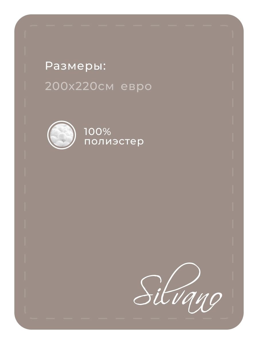 Плед евро Silvano имеет размер 200х220 см — это оптимально для двуспальных и евро-кроватей, а также для укрытия дивана или использования как покрывало.