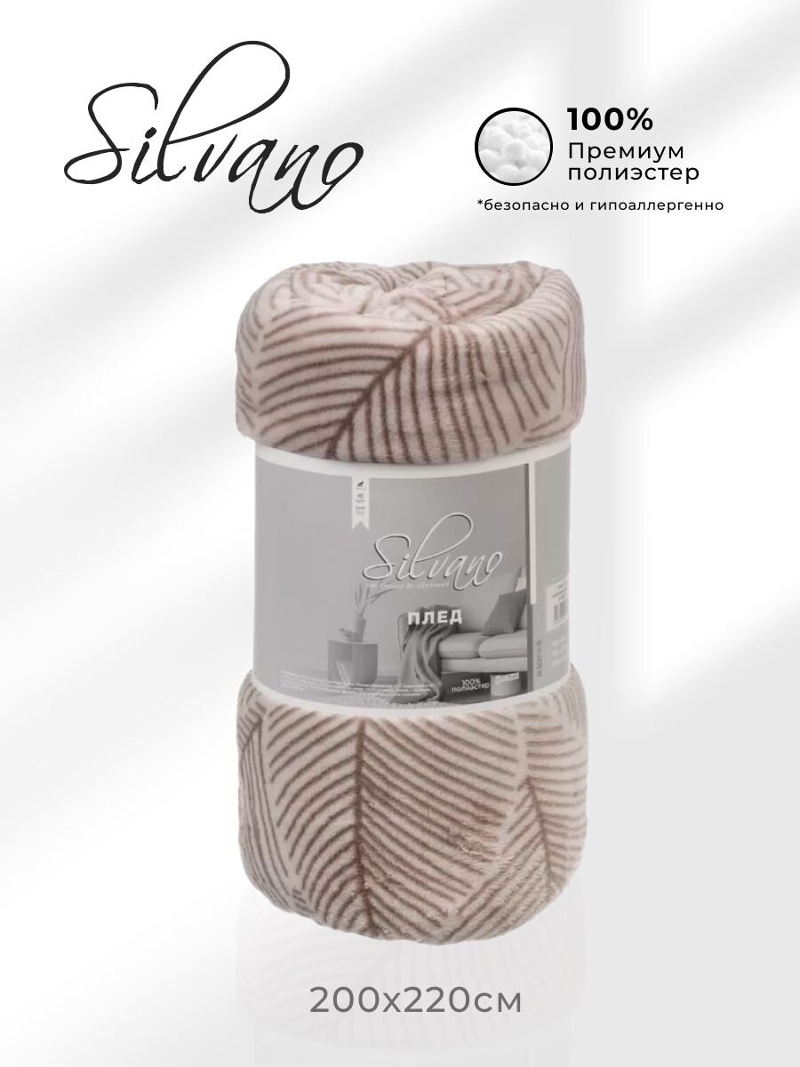 Плед евро 200х220 см Silvano Листья — уют и тепло для вашего дома: мягкий велсофт, стильный бежевый дизайн, выгодная цена и универсальный размер.