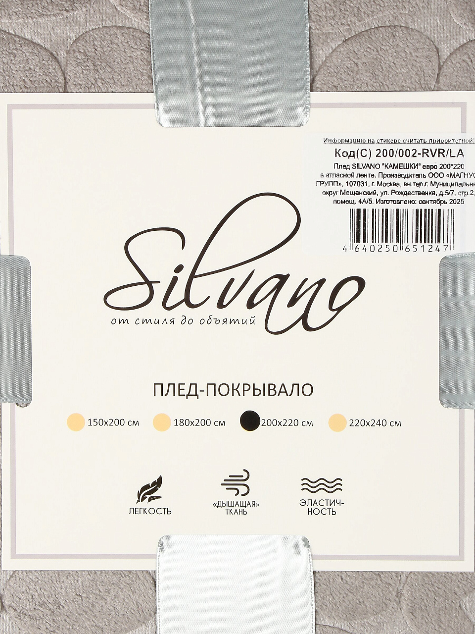 Плед евро, 200х220 см, велсофт жаккард, 100% полиэстер, Silvano, Камешки, серый, 200/002-RVR/LA