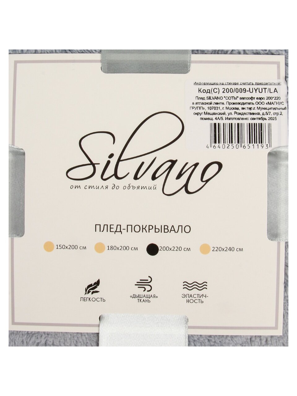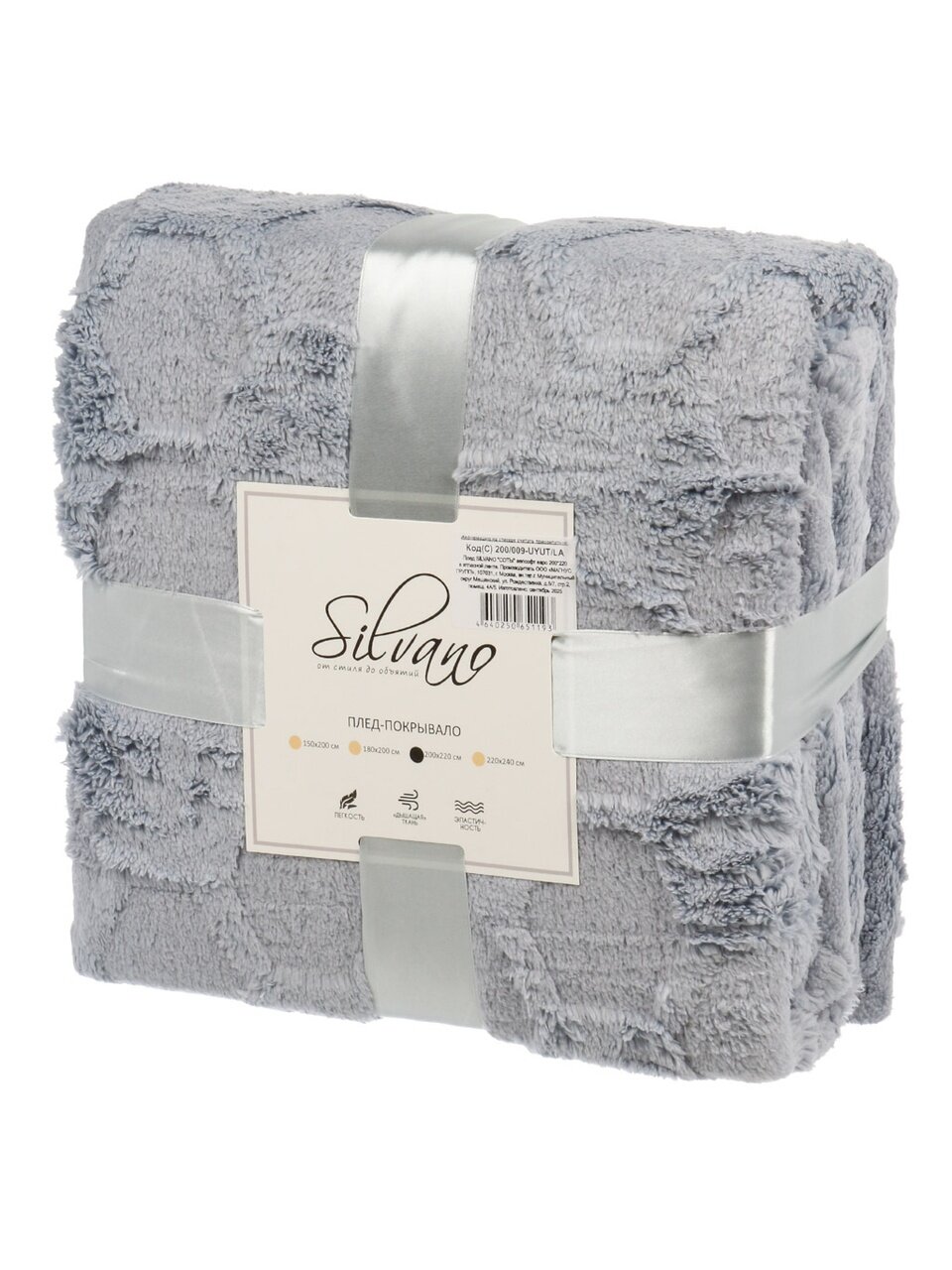 Плед Silvano размером 200х220 см идеально подходит для кровати евро-стандарта, полностью закрывает спальное место и может использоваться как покрывало.