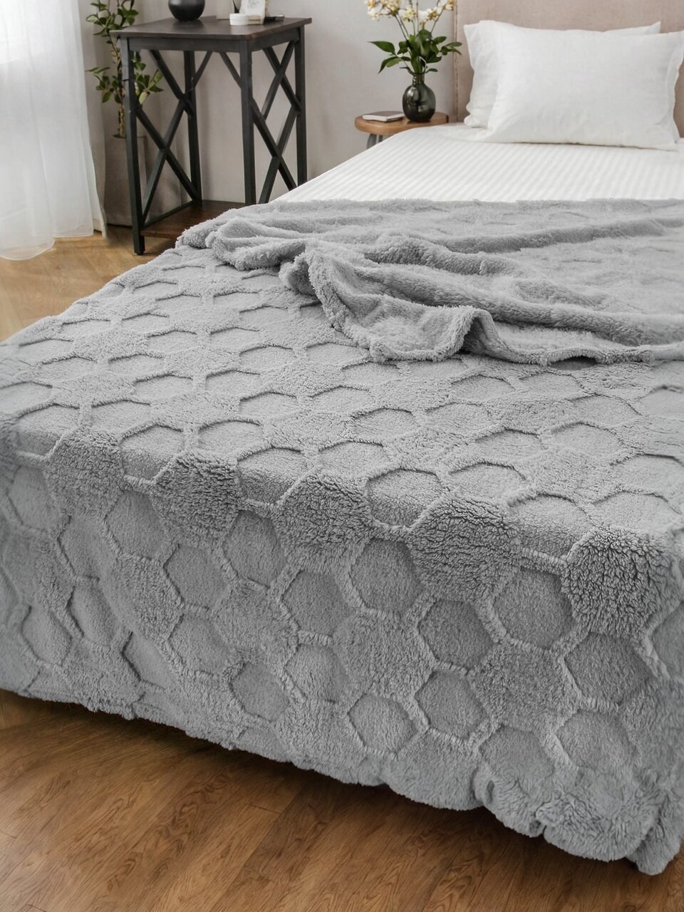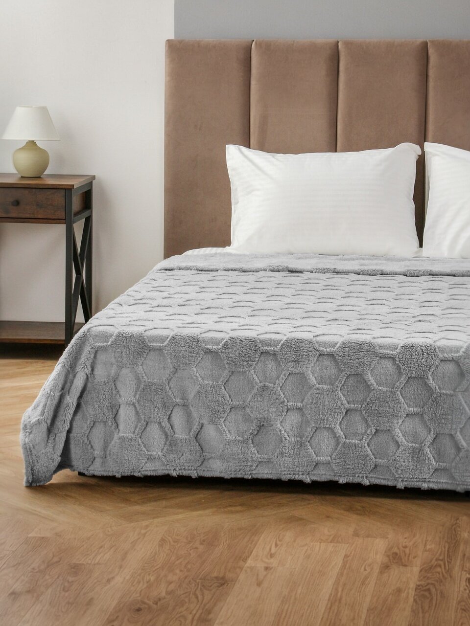 Плед евро 200х220 см велсофт жаккард Silvano «Соты» — уют и тепло для дома, дачи или подарка: мягкий, гипоаллергенный, стильный голубой цвет.