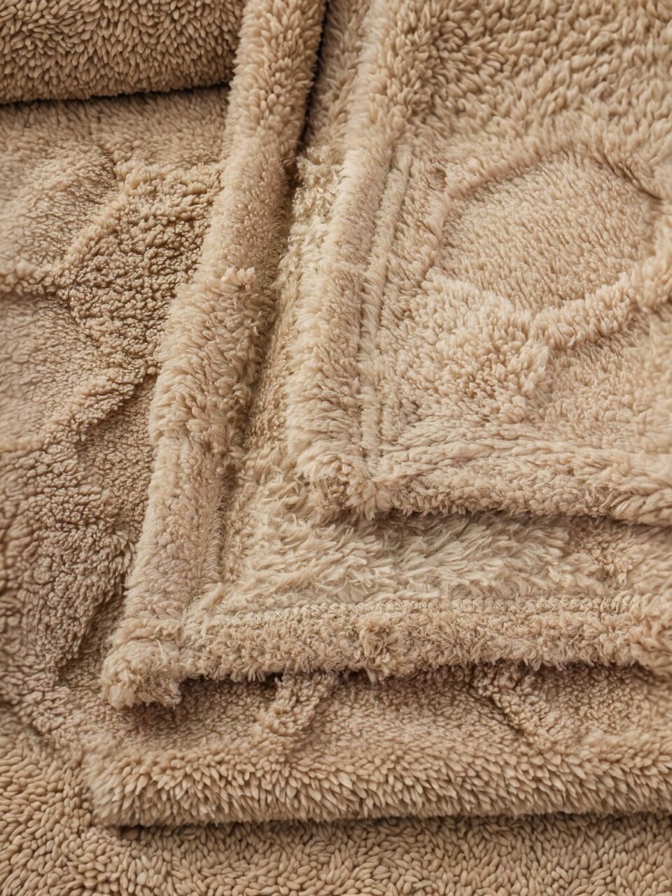 Плед выполнен из велсофта жаккард (100% полиэстер), что делает его более легким, гипоаллергенным и устойчивым к износу по сравнению с натуральными тканями.