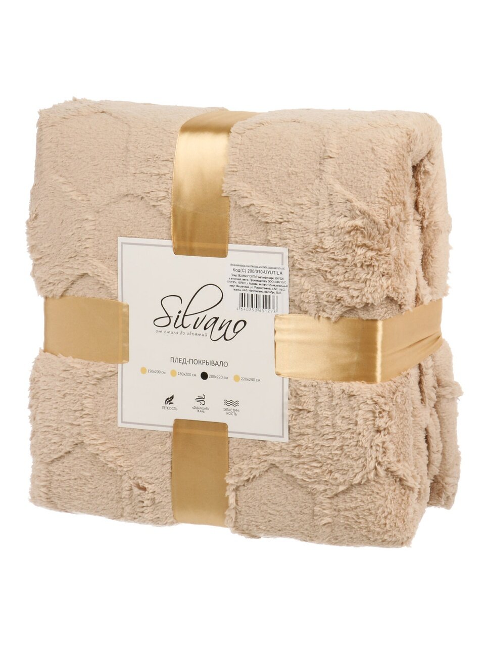 Плед евро 200х220 см велсофт жаккард Silvano: уют, тепло и стиль в бежевом цвете — идеальный выбор для дома и дачи по выгодной цене.