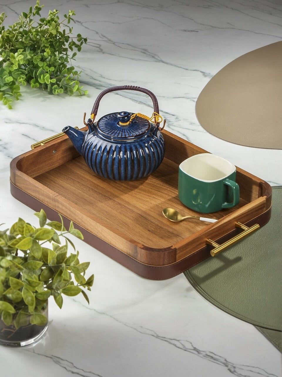 Откройте для себя стиль и функциональность с подносом из акации, который станет незаменимым помощником в вашем доме. Этот элегантный прямоугольный поднос с металлическими ручками не только облегчит повседневные задачи, но и добавит нотку изысканности в интерьер.