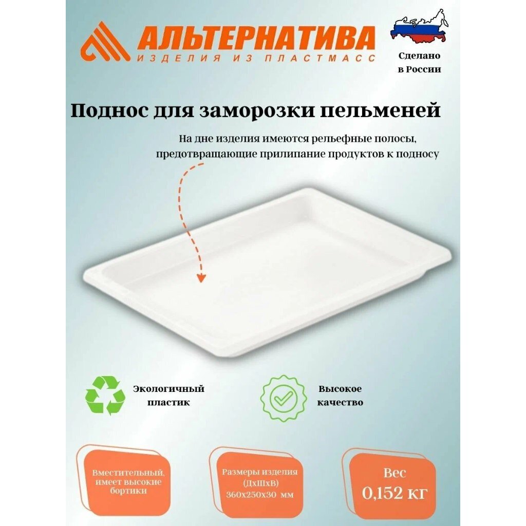 Пластиковый поднос для заморозки Альтернатива М5230 пригодится любой хозяйке при лепке пельменей или полуфабрикатов. Он выполнен из легкого и устойчивого к перепадам температур пластика. Такая посуда – это очень удобно и практично.