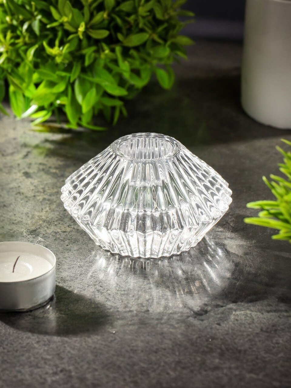 Подсвечник декоративный стекло, 1 свеча, 7.7х4 см, Кристалл, Y6-6502