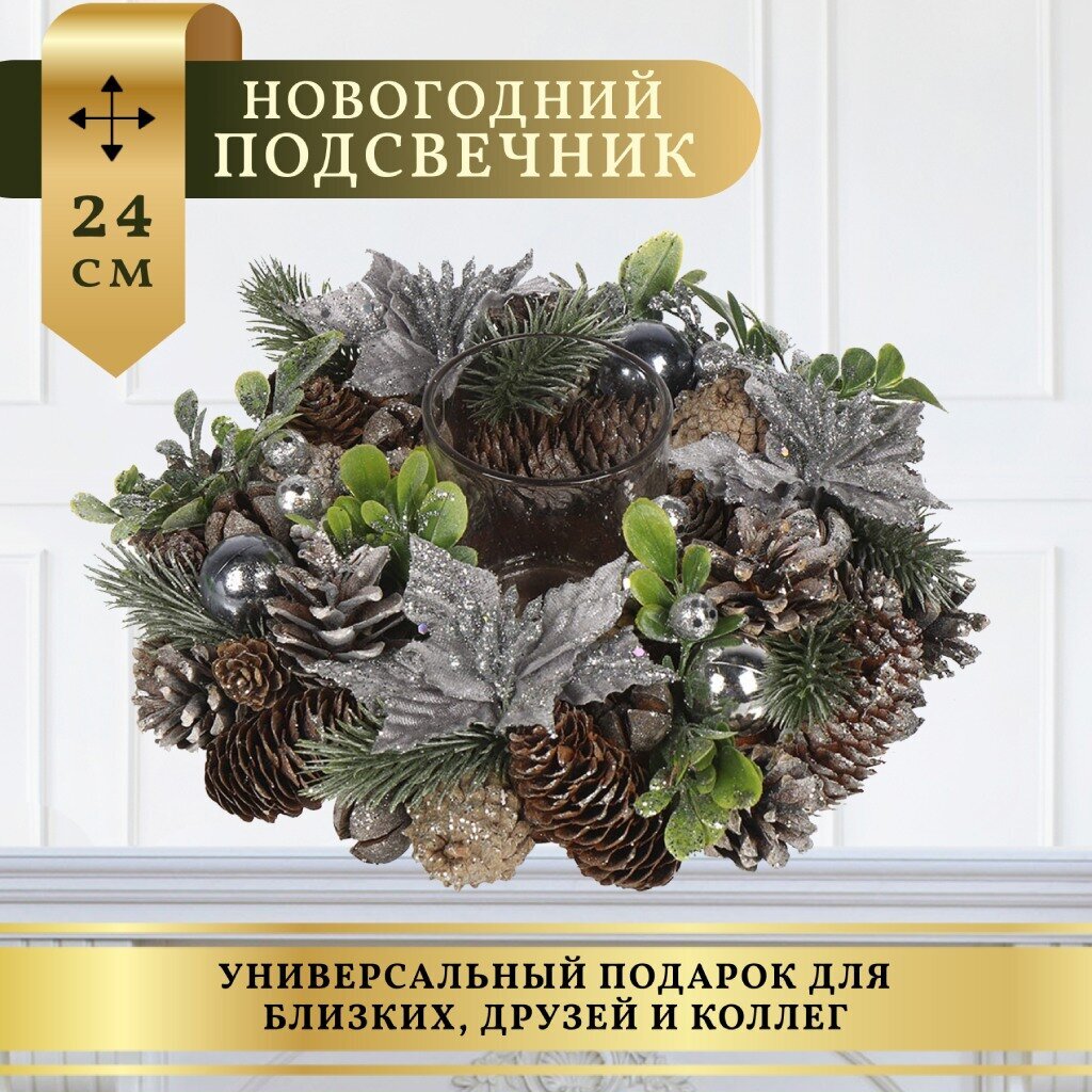 Рождественский венок с подсвечником принесет долгожданный дух зимних праздников, сделает атмосферу в доме уютной, торжественной и элегантной, придаст вашему столу шикарный и роскошный вид, наполненный радостью и волшебством рождественских праздников.