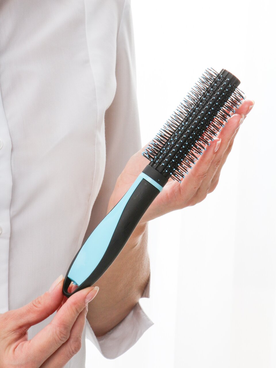 Пластиковый брашинг легче, не нагревается при сушке феном, безопасен для тонких и ослабленных волос, прост в уходе.