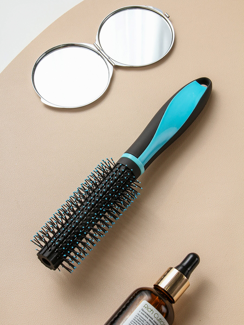 Расческа брашинг 23х4 см черно-голубая A100045 — идеальный инструмент для быстрой укладки и объёма волос дома и в поездках. Универсальный размер, лёгкость и стильный дизайн.