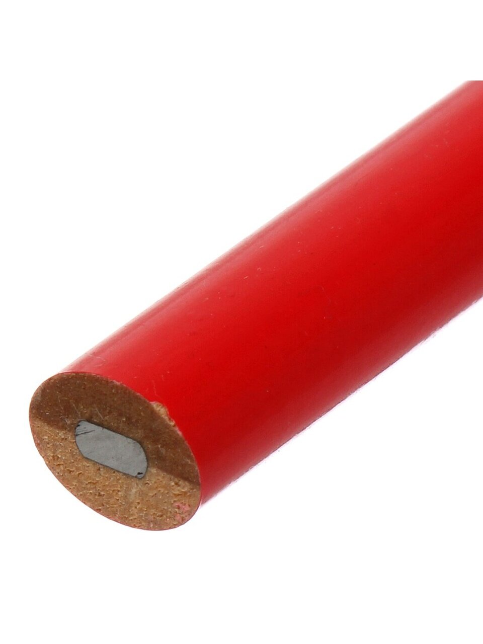 Малярный карандаш Политех 1590180 имеет овальный в сечении корпус, мягкий тостый графитовый стержень, очерчивает хорошо видную разметку.