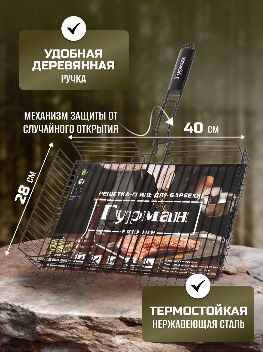 Вы можете приобрести «Решетка барбекю 400х280х60 мм, Гурман, Люкс, сталь, 4 уровня, антипригарное покрытие, рукоятка дерево, 22003NS-enf» и другие товары в нашем интернет-магазине в Коврове по низким ценам и с бесплатным самовывозом.