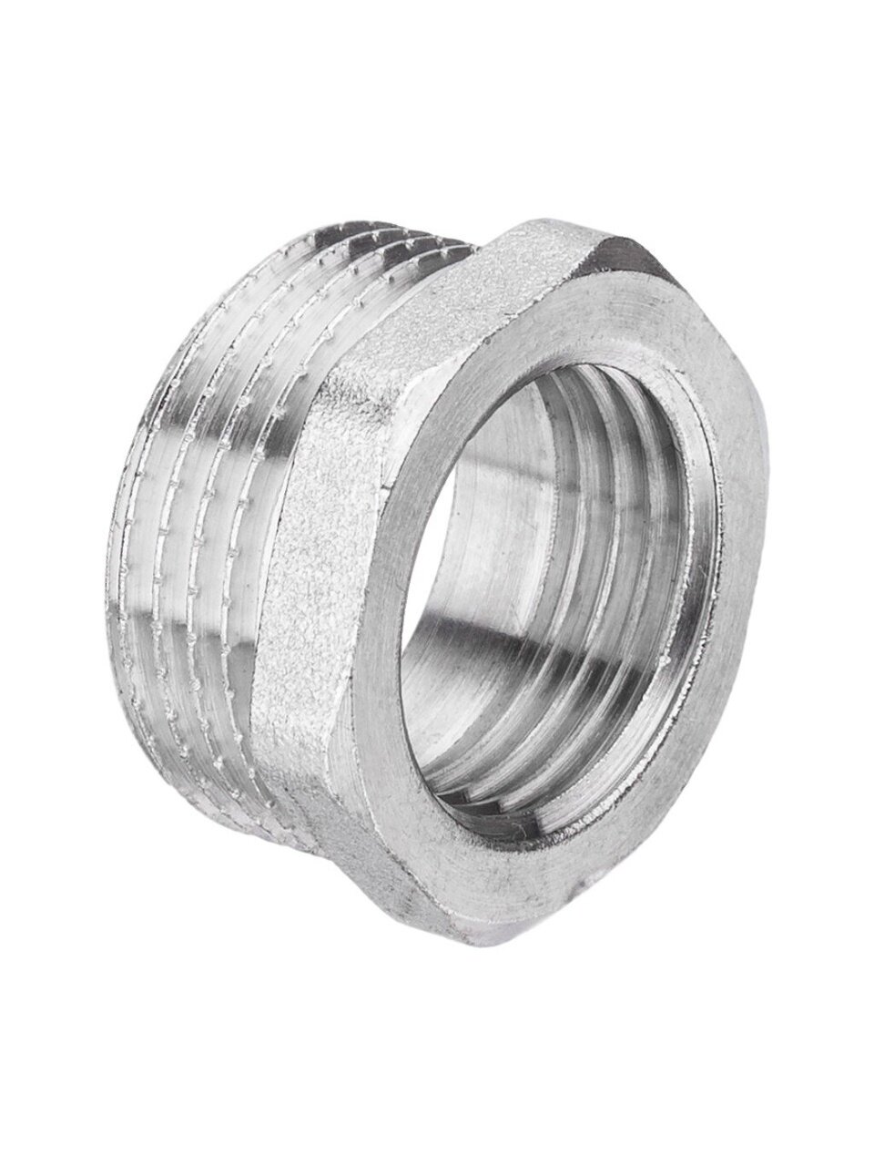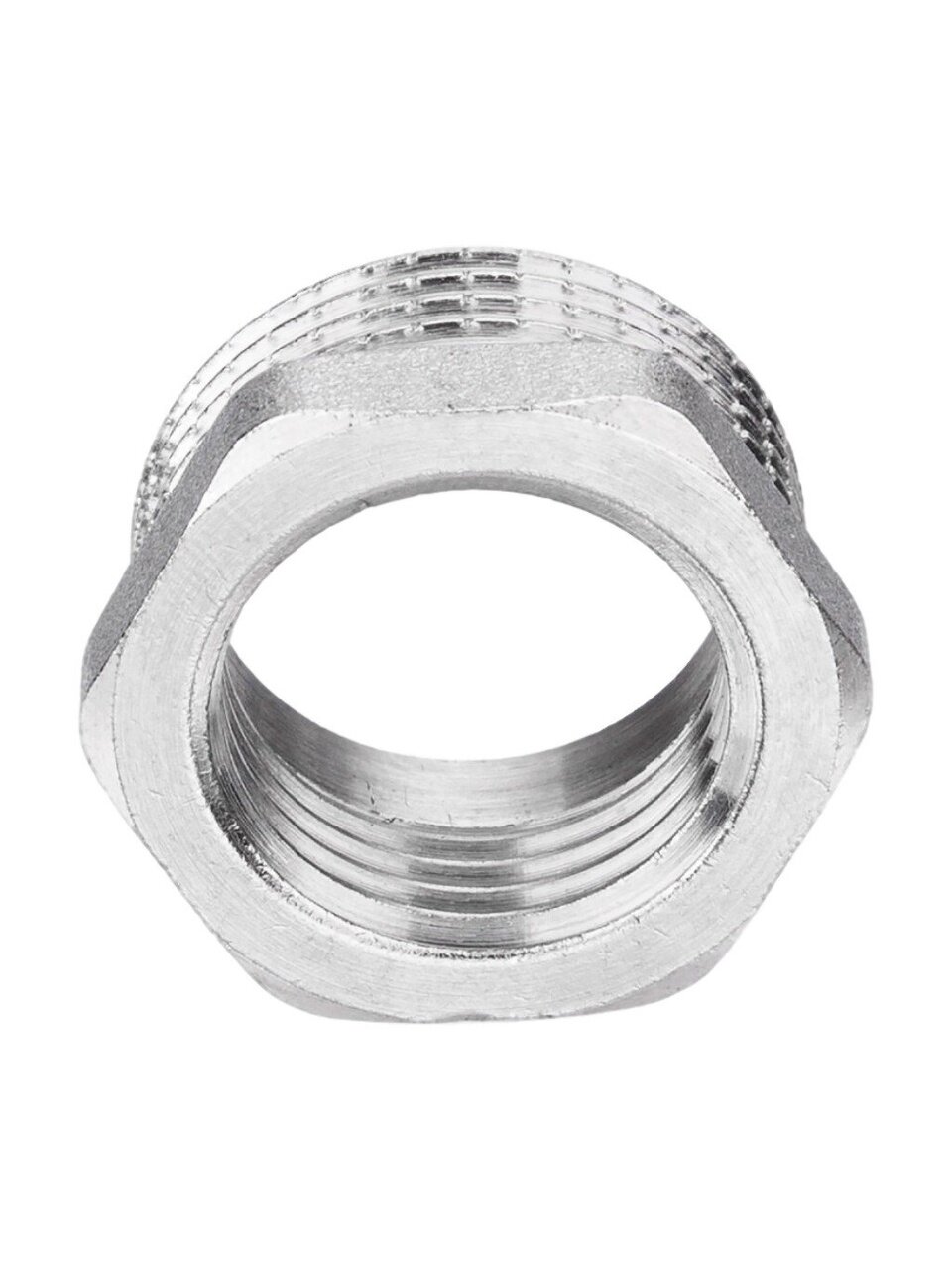 Футорка рассчитана на соединение элементов с наружной резьбой 3/4 дюйма и внутренней резьбой 1 дюйм. Это позволяет использовать её для перехода между трубами разного диаметра.