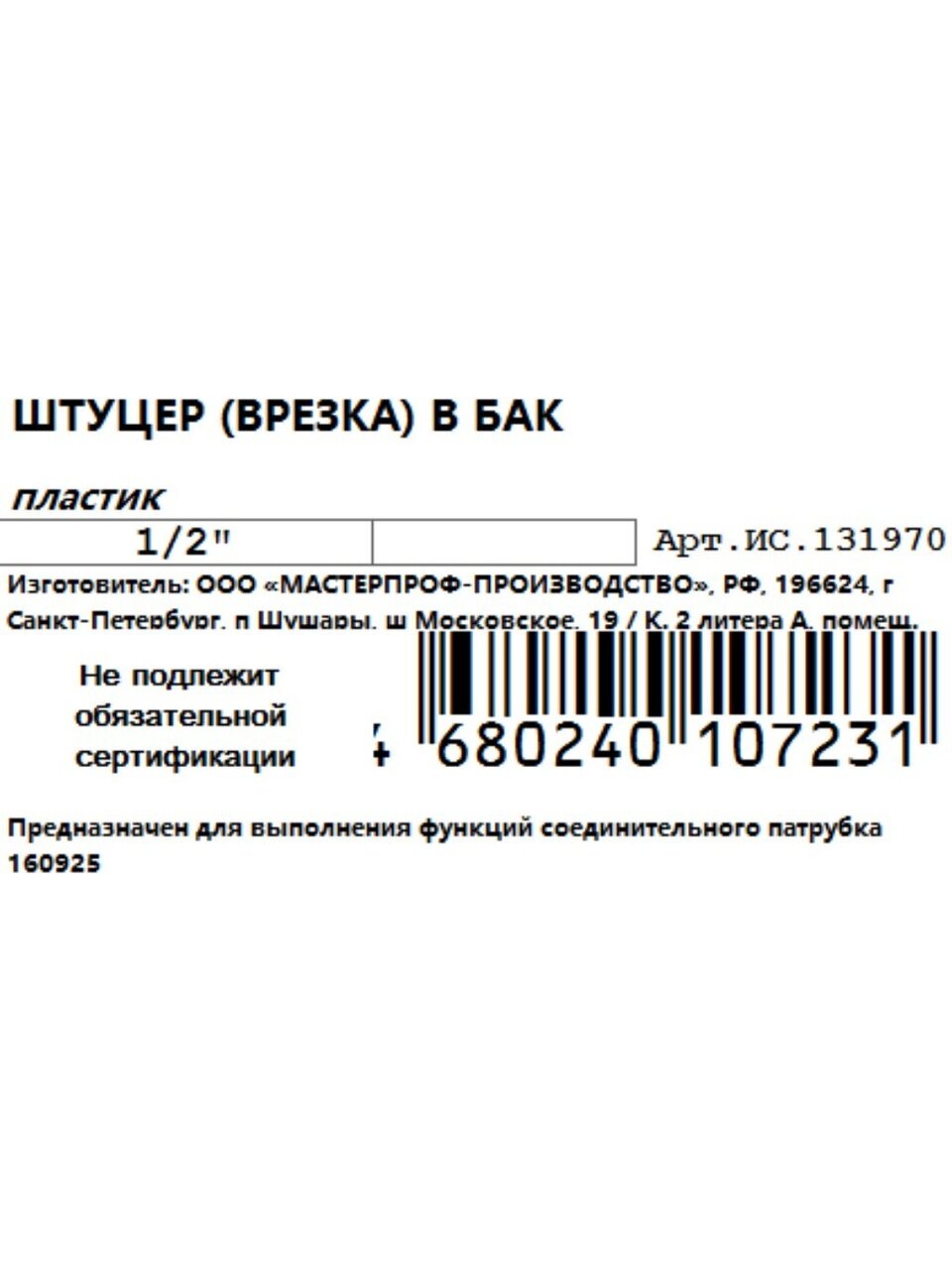 Закажите штуцер для бака MasterProf прямо сейчас — мы гарантируем быструю доставку, выгодную цену и поддержку по установке. Надёжность и простота — ваш уверенный выбор!