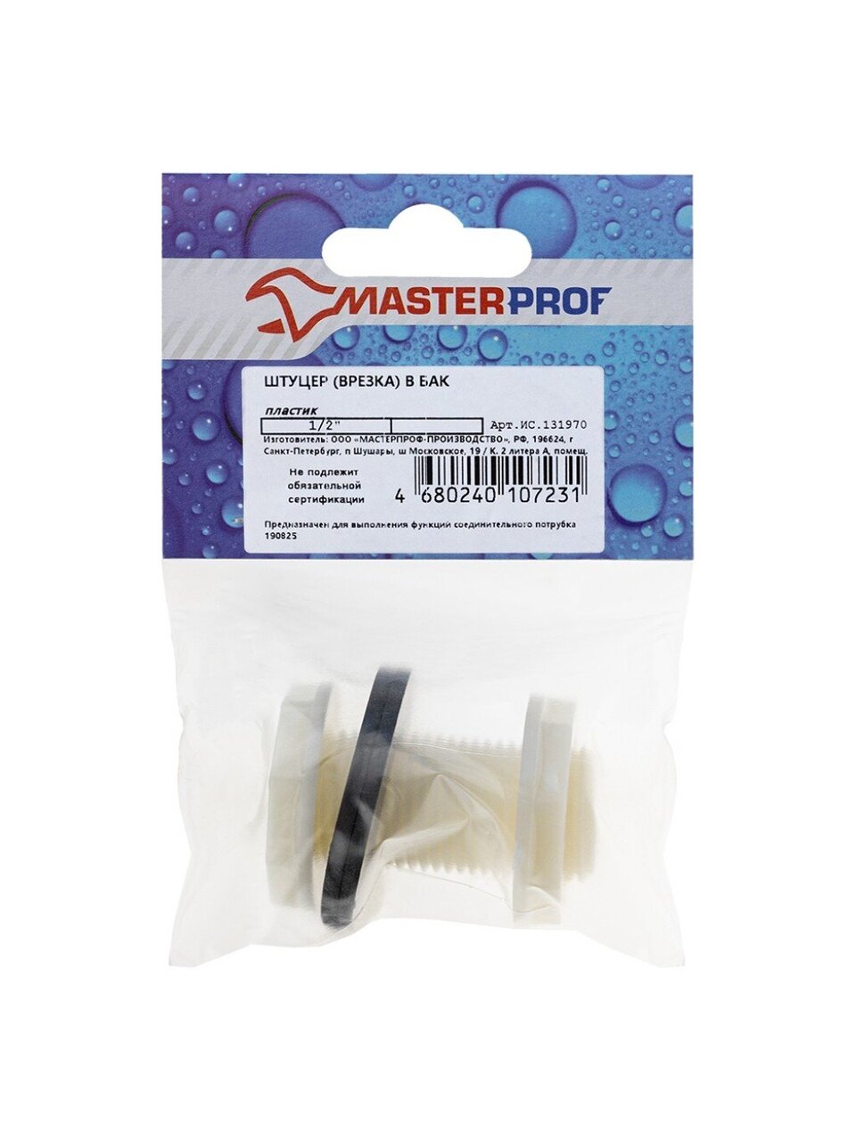 Штуцер для бака 1/2" MasterProf — надёжное пластиковое соединение для горячего и холодного водоснабжения. Установите легко, забудьте о протечках и коррозии.