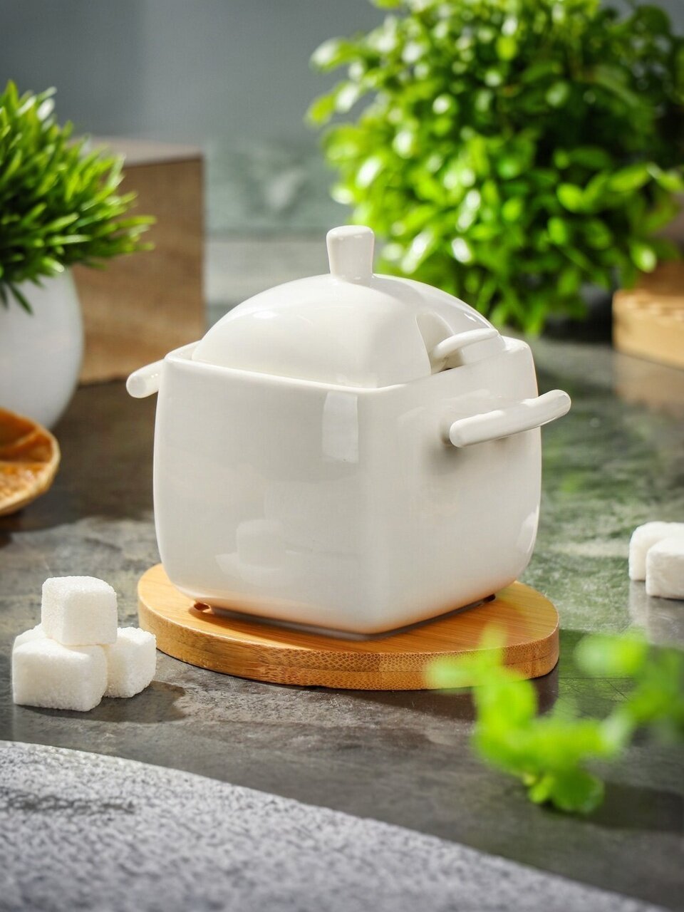 Сахарница станет отличным дополнением к набору кухонной посуды и прекрасно подойдет для сервировки как обеденного, так и праздничного стола. Выполнена из абсолютно безопасного материала — керамики, которая не вступает в реакцию с продуктами, а также не влияет на запах и вкус.