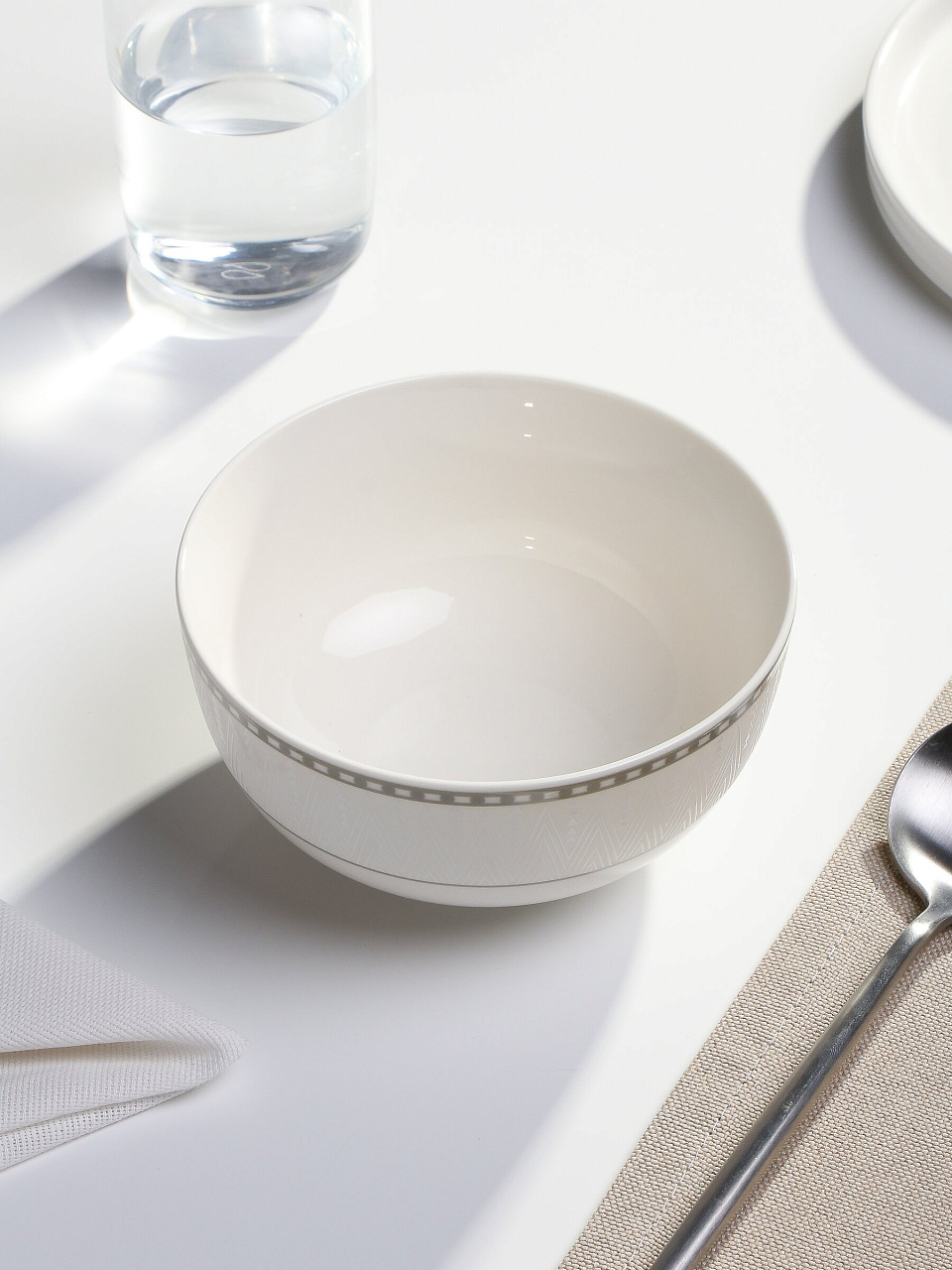 Фарфор не впитывает запахи, устойчив к царапинам и перепадам температур, сохраняет эстетичный вид дольше, а современный орнамент делает подачу блюд более эффектной.