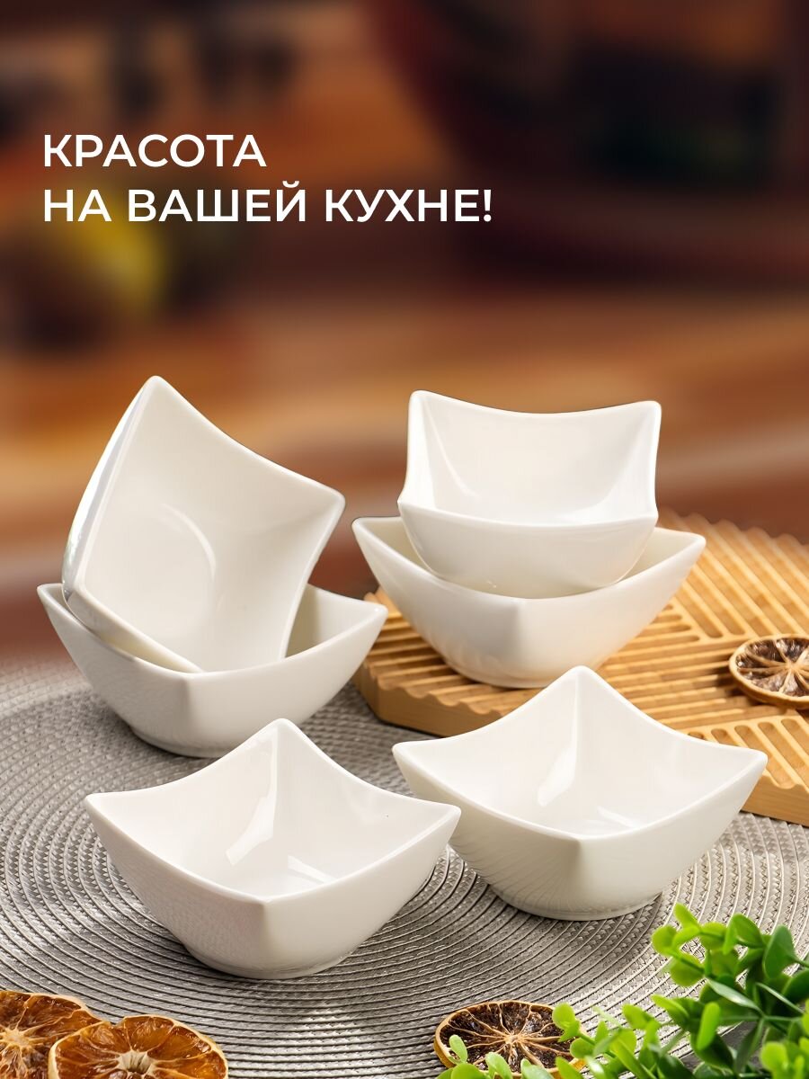 Салатники керамические квадратные 6 шт 10×4.8 см — стильное решение для сервировки, подходят для дома и дачи, легко мыть, оптимальный объём на порцию.
