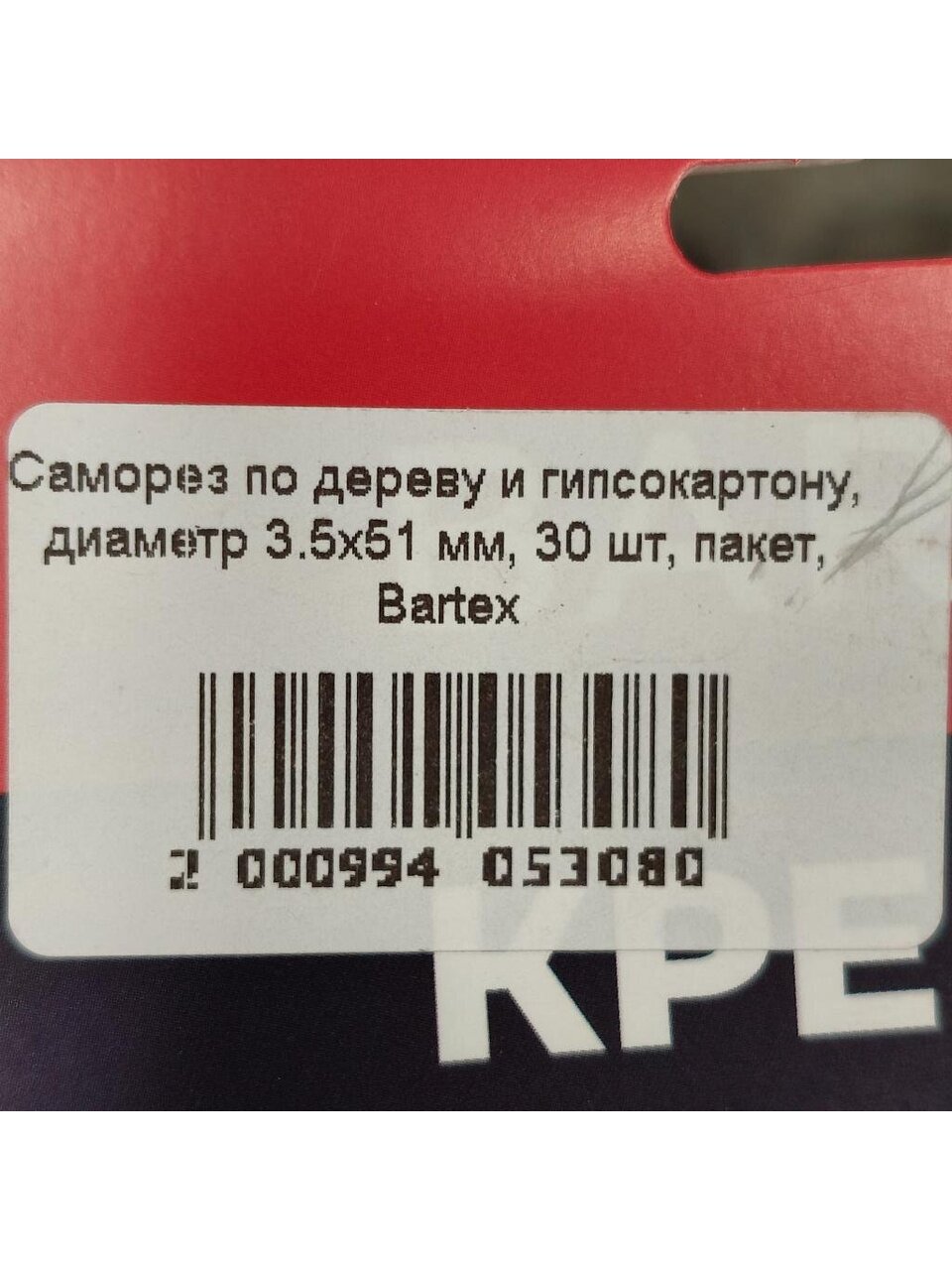 Вы можете приобрести «Саморез по дереву и гипсокартону, диаметр 3.5х51 мм, 30 шт, пакет, Bartex» и другие товары в нашем интернет-магазине в Серпухове по низким ценам и с бесплатным самовывозом.