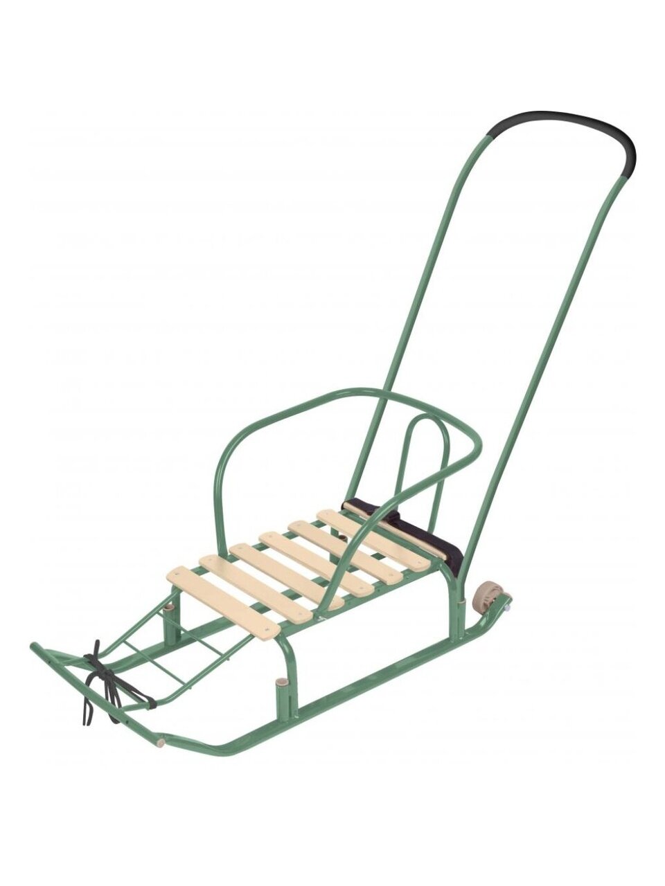 Санки идеально подходят для перевозки ребенка в зимнее время года. Широкие полозья обеспечивают устойчивость санок и легкое скольжение по снегу. На конце полозьев установлены транспортировочные колеса, что позволяет, слегка приподняв переднюю часть, перевести санки по асфальту, а при заходе в помещение их не нужно нести в руках - сани можно просто катить. Санки оснащены спинкой с подлокотниками, которые позволяют ребенку крепко держаться, а ремень безопасности не позволит малышу выпасть. Полозья санок загнуты для езды в обоих направлениях. Для перемещения предусмотрен буксировочный трос.