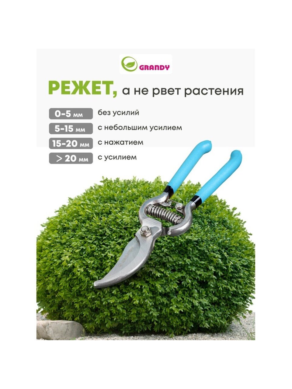 Секатор Grandy предназначен для выполнения работ по уходу за садом. Секатор с прямым резом, обрезиненными рукоятками и боковым фиксатором. Рекомендуется для обрезки живых веток диаметром до 15 мм.
