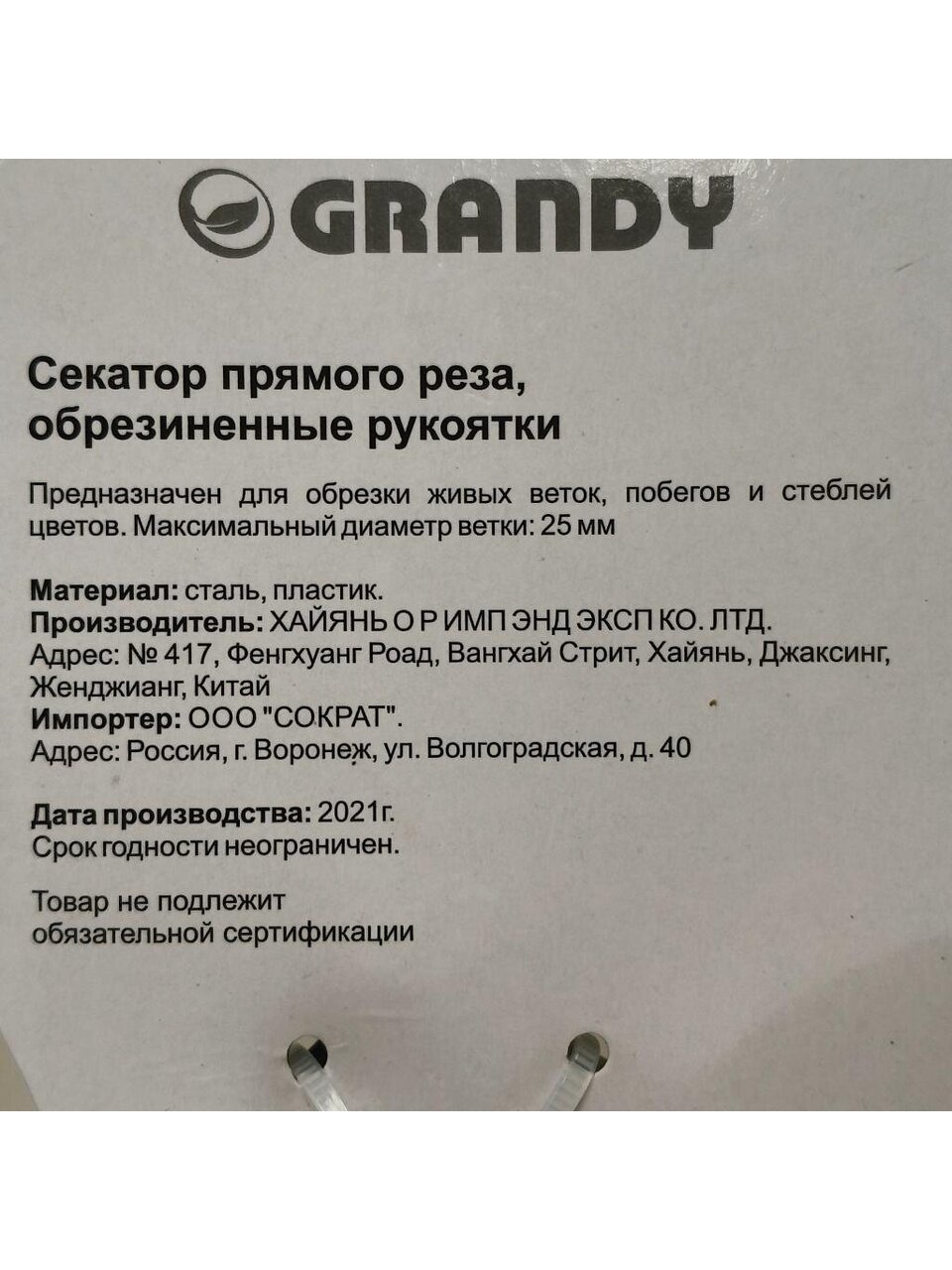 Вы можете приобрести «Секатор 200 мм, диаметр реза 25 мм, прямого реза, Grandy, рукоятка резина» и другие товары в нашем интернет-магазине в Нижнем Новгороде по низким ценам и с бесплатным самовывозом.