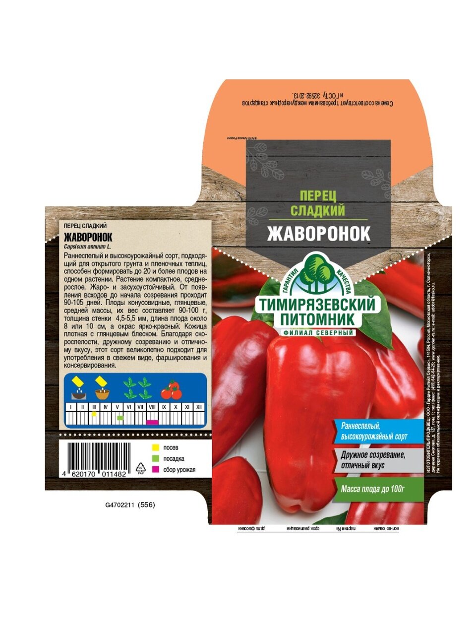 Семена сладкого перца Жаворонок 0.25 г — быстрый урожай для дачи без хлопот: раннеспелость, высокая всхожесть, яркая упаковка от Тимирязевского питомника.