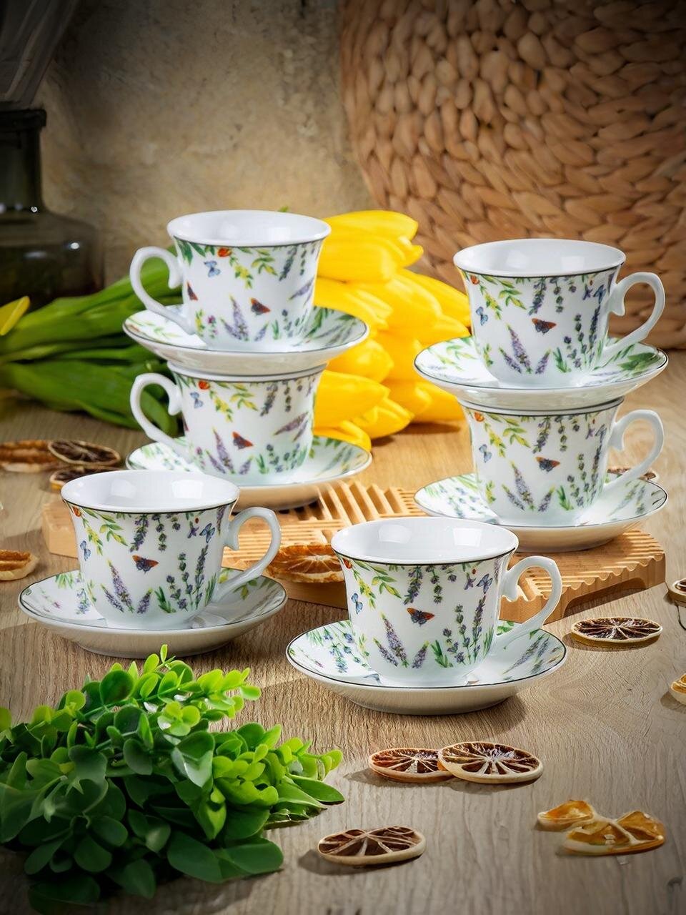 Набор чайный Daniks «Лавандовый шлейф» на 6 персон — идеальный подарок: 12 предметов, керамика с цветочным рисунком, стиль для дома и дачи.