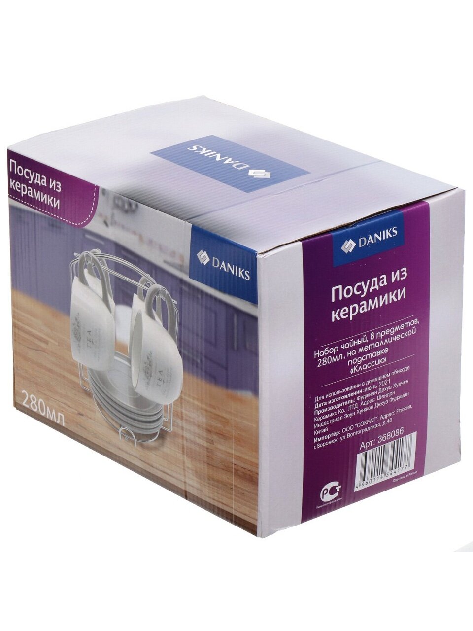 Вы можете приобрести «Набор чайный керамика, 8 предметов, на 4 персоны, 280 мл, металлическая подставка, Daniks, Классик, HC127-N1, подарочная упаковка» и другие товары в нашем интернет-магазине в Орле по низким ценам и с бесплатным самовывозом.