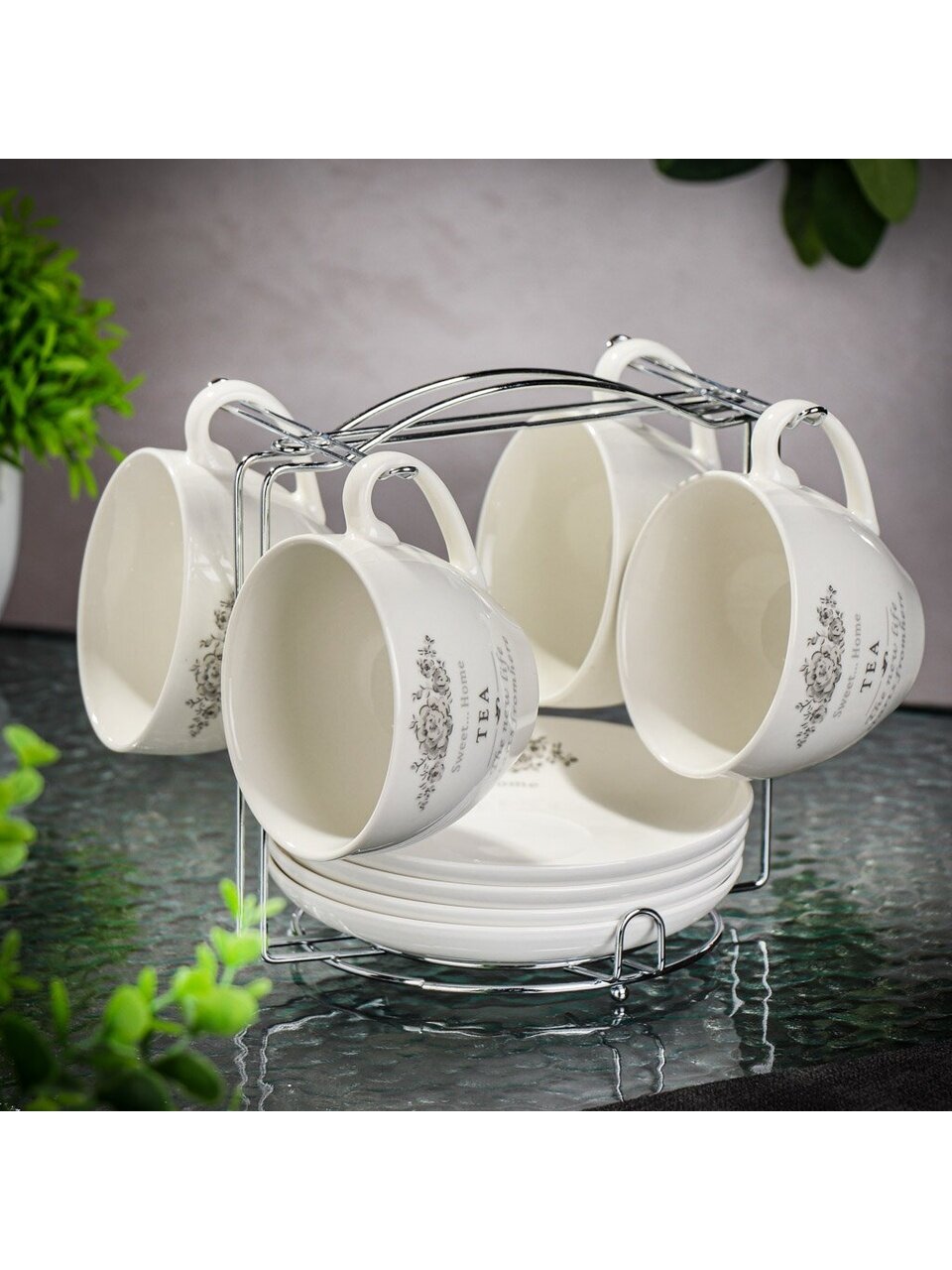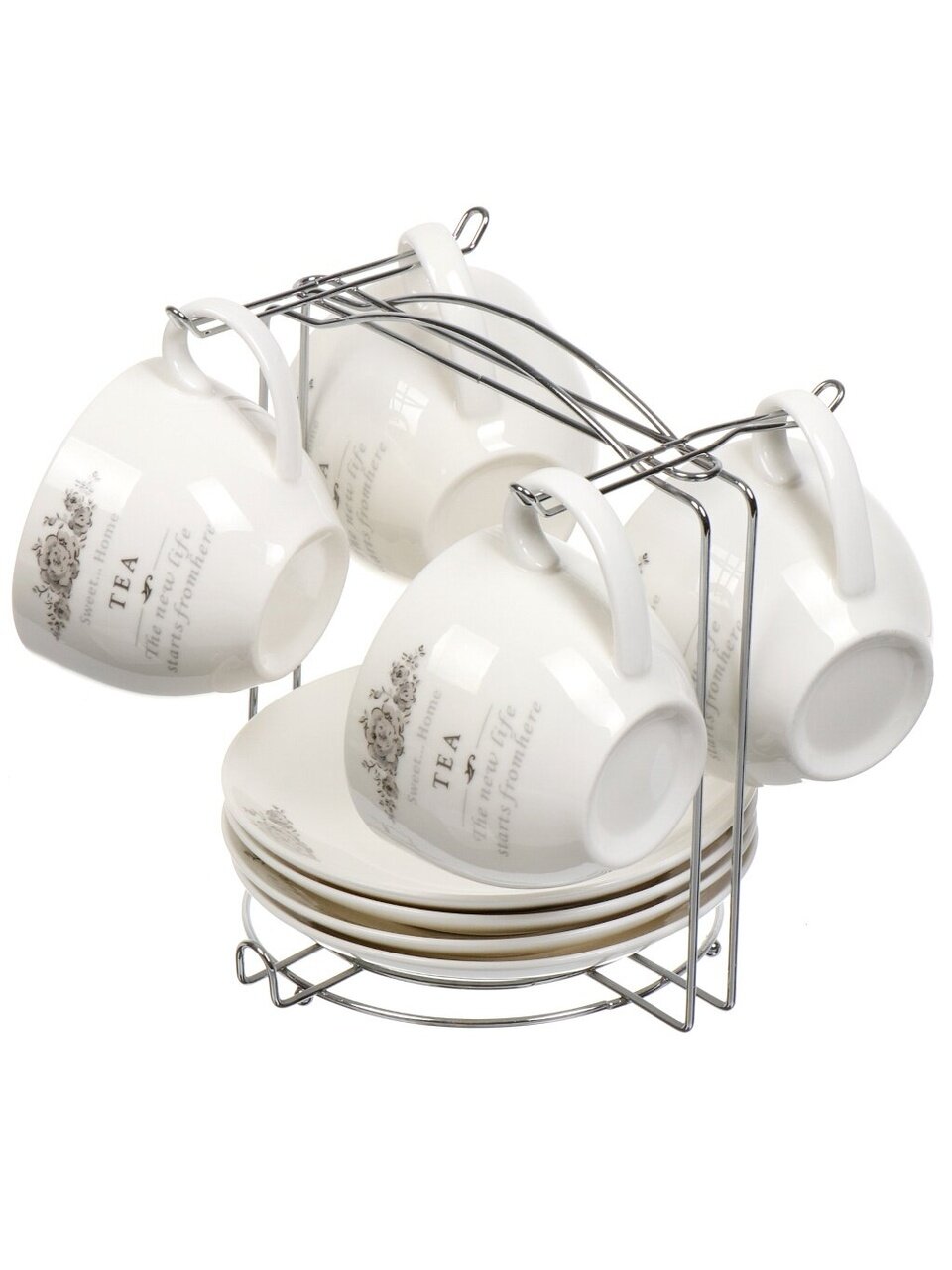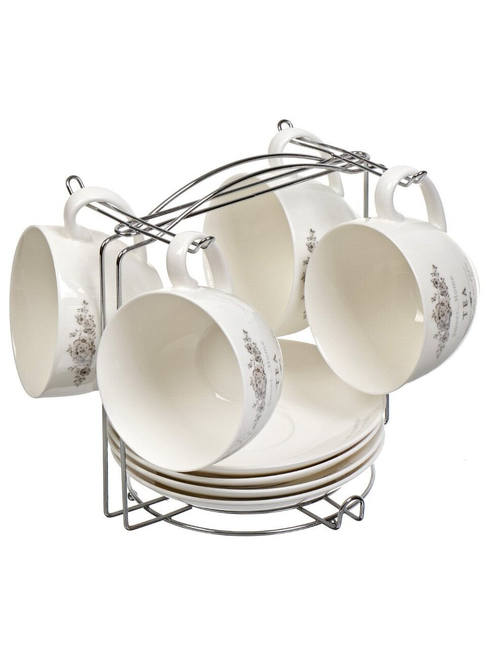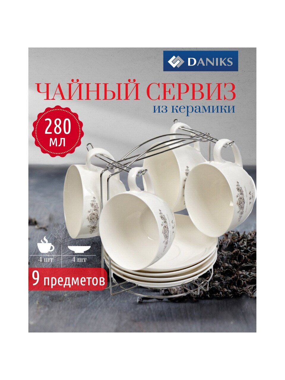 Чайный набор Daniks Классик на 4 персоны: идеальный подарок в стильной упаковке, керамика 280 мл, металлическая подставка, подходит для СВЧ и ПММ.