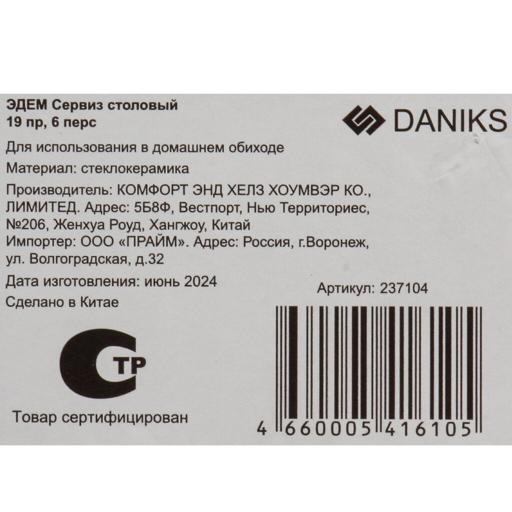 Сервиз столовый Daniks Эдем: 19 предметов на 6 персон из стеклокерамики — элегантный выбор для дома, дачи и подарка. Идеальное решение для стильной сервировки без хлопот.
