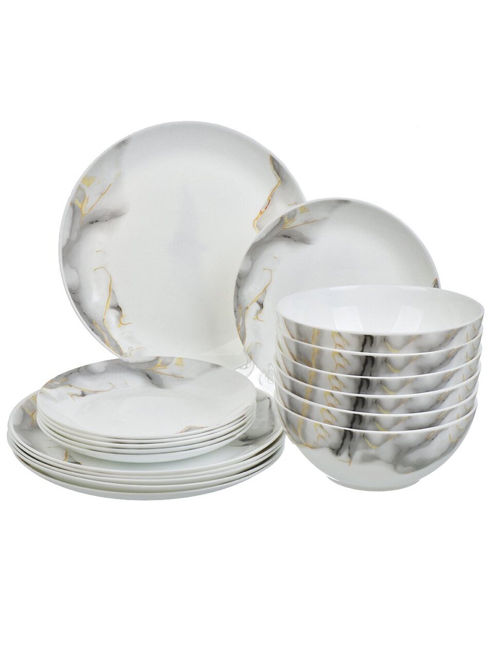 Столовый сервиз Daniks Флюид на 6 персон: стильная стеклокерамика, 18 предметов для уютных семейных ужинов и праздничных встреч. Легко мыть, подходит для СВЧ, идеален для дома и дачи.