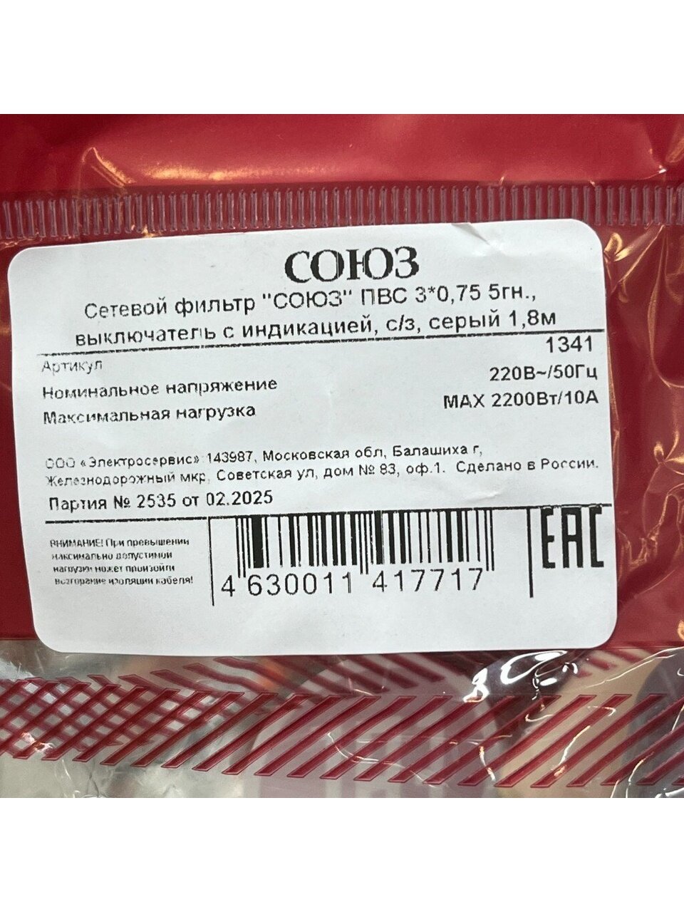 Вы можете приобрести «Сетевой фильтр 5 гнезд, 1.8 м, ПВС, 3х0.75 мм², с заземлением, 10 А, серый, Союз, 134101» и другие товары в нашем интернет-магазине в Железногорске по низким ценам и с бесплатным самовывозом.