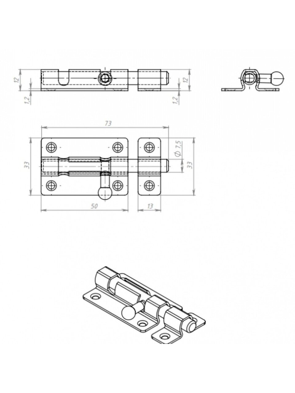 Задвижка дверная ЗТ5 отлично фиксирует дверь в закрытом состоянии. Декоративное покрытие предохраняет металл от коррозии и придает поверхности изделия блестящий оттенок.